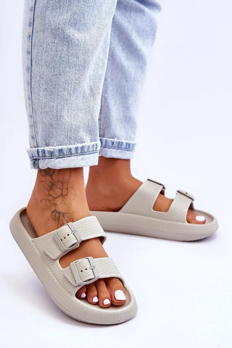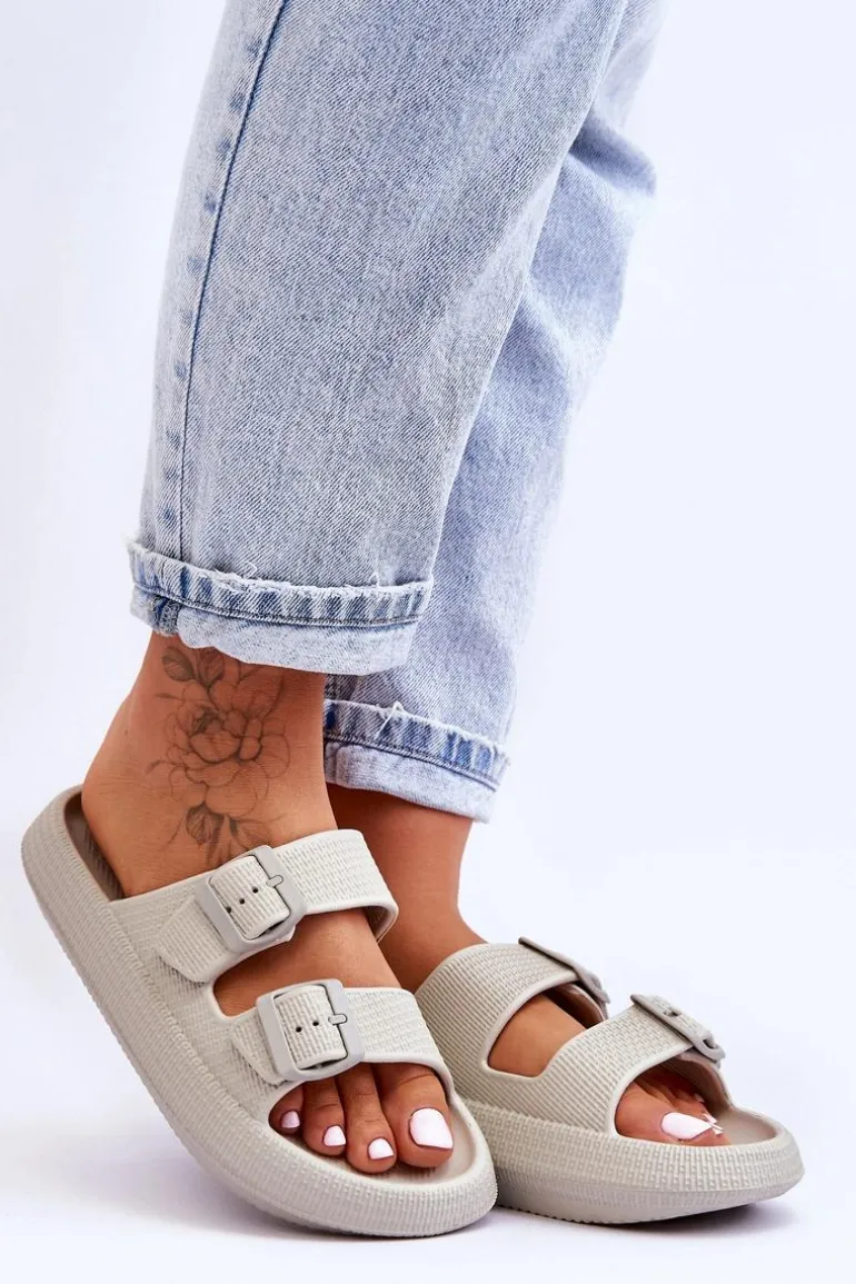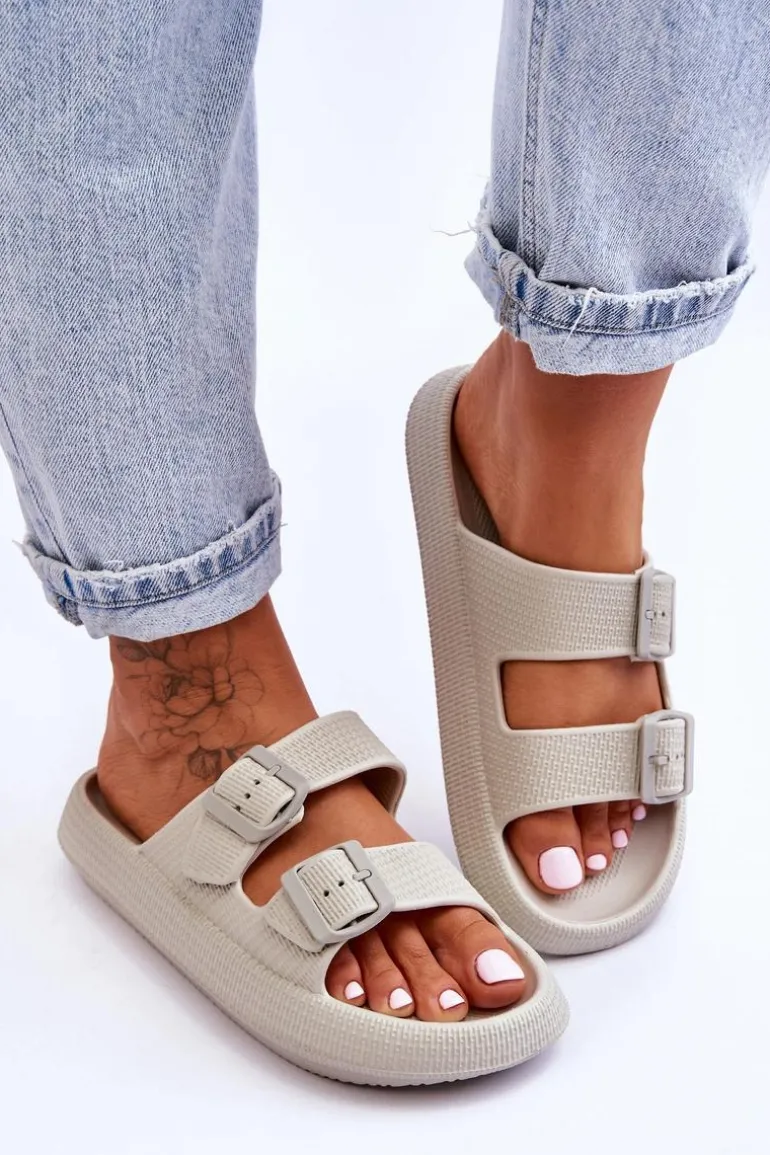 Klasyczne, damskie klapki zostały wykonane w całości z piankowego tworzywa. Posiadają klamry z tworzywa sztucznego z regulowanymi paskami. Model ten został osadzony na masywnej platformie. Idealne obuwie na letni sezon. Klapki te są niezwykle przewiewne i wygodne. Świetnie sprawdzą się także na basen czy plażę. Przy wyborze rozmiaru prosimy sugerować się tabelą rozmiarów.