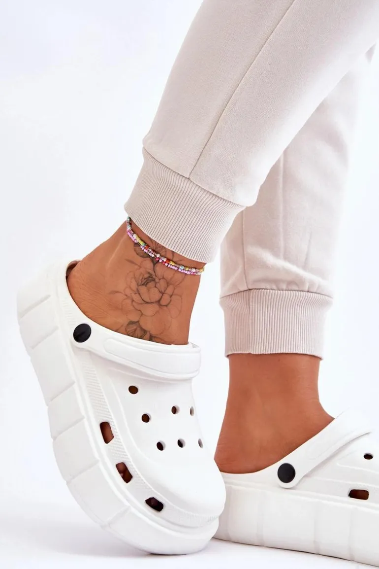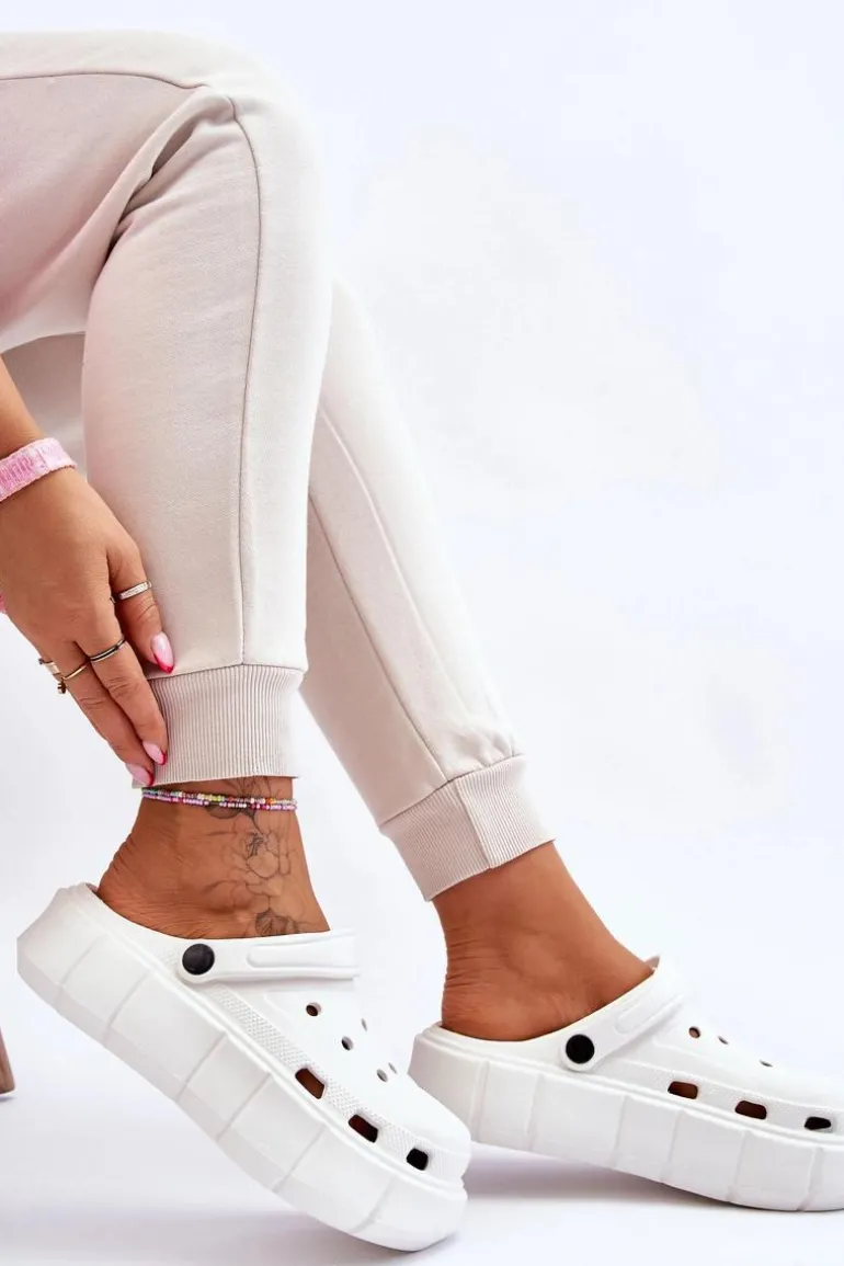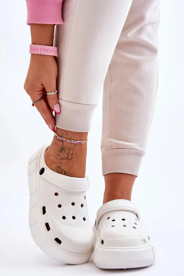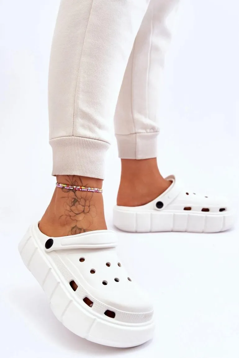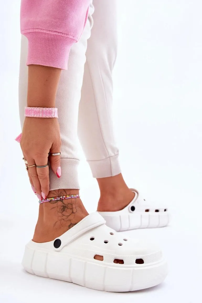 Damskie klapki w stylu kroksów wykonane zostały z piankowego tworzywa. Ruchomy paseczek zabezpiecza przed przesuwaniem się stopy. Buty zostały osadzone na masywnej platformie. Idealny model do pracy w ogrodzie czy użytkowania w domu zamiast papci. Otwory w cholewce pozwalają na odpowiednią wentylację obuwia, co świetnie sprawdza się podczas cieplejszych dni. Przy wyborze rozmiaru prosimy sugerować się tabelą rozmiarów.