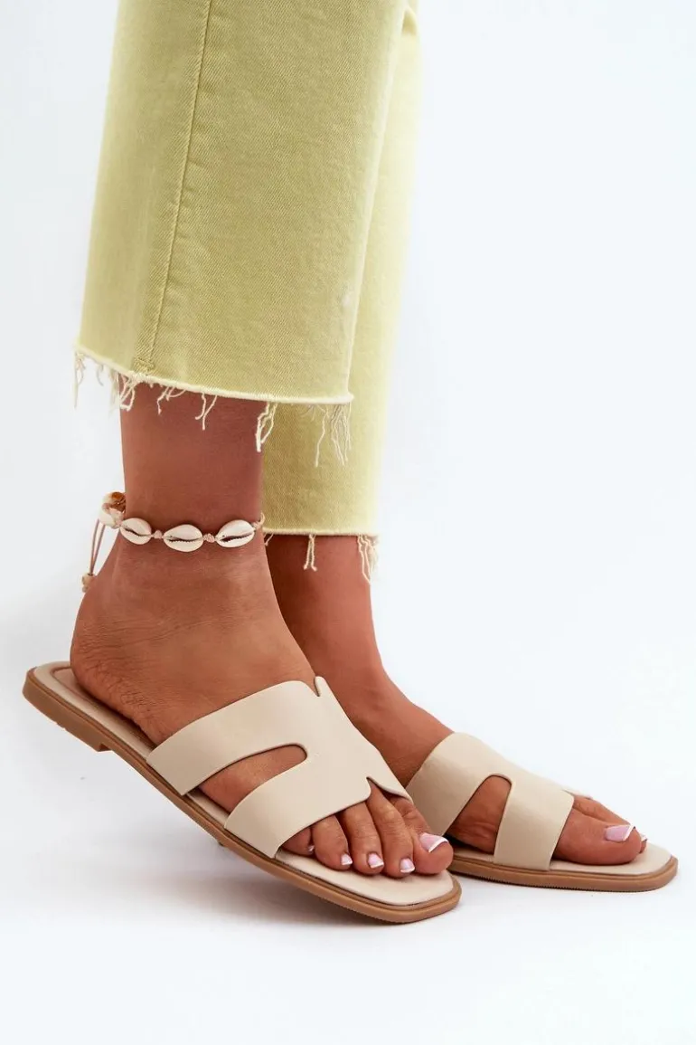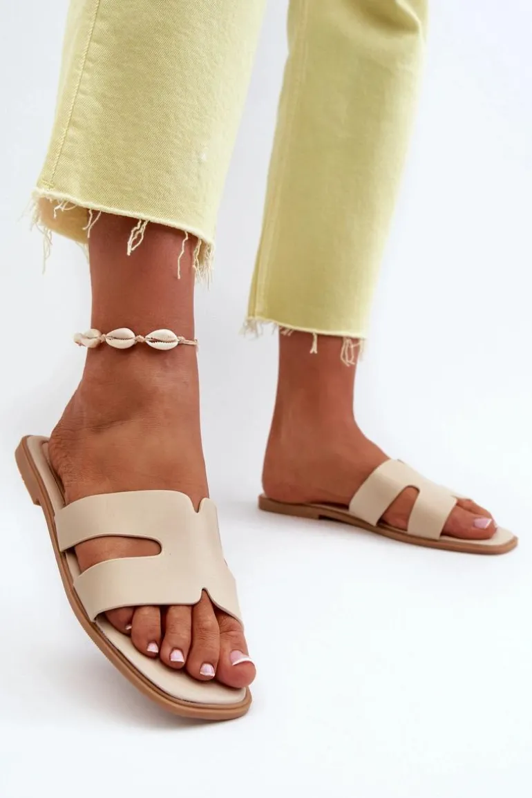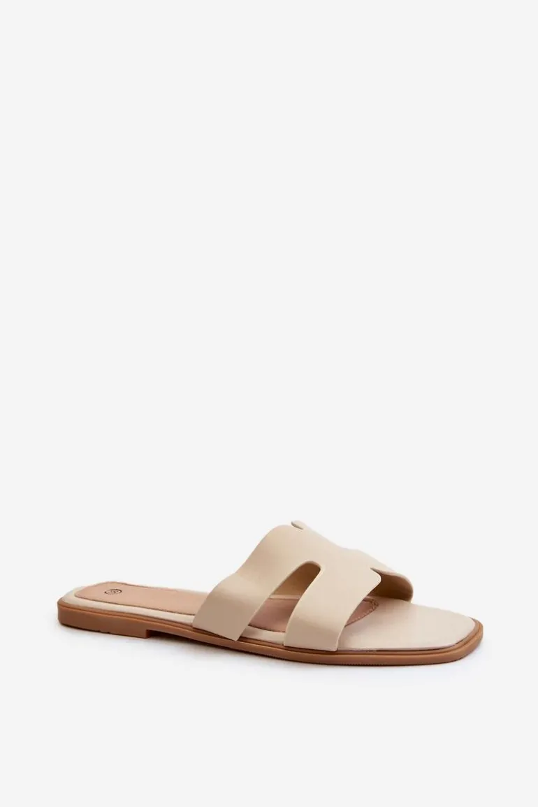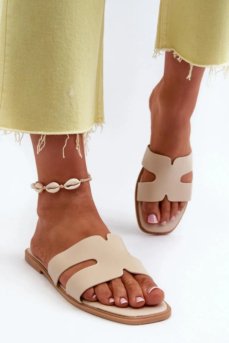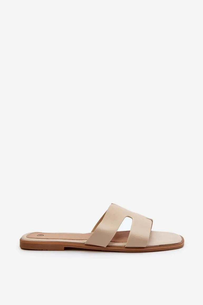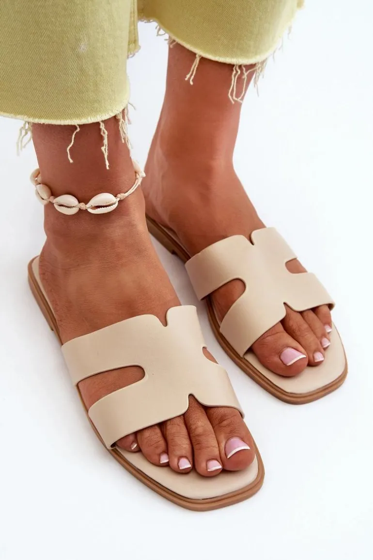 Damskie Płaskie Klapki Z Wycięciami Beżowe Fiviama
