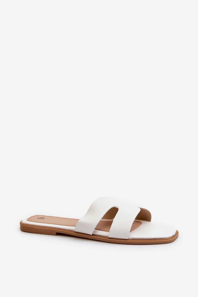 Damskie Płaskie Klapki Z Wycięciami Białe Fiviama