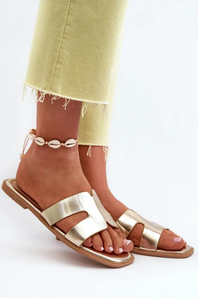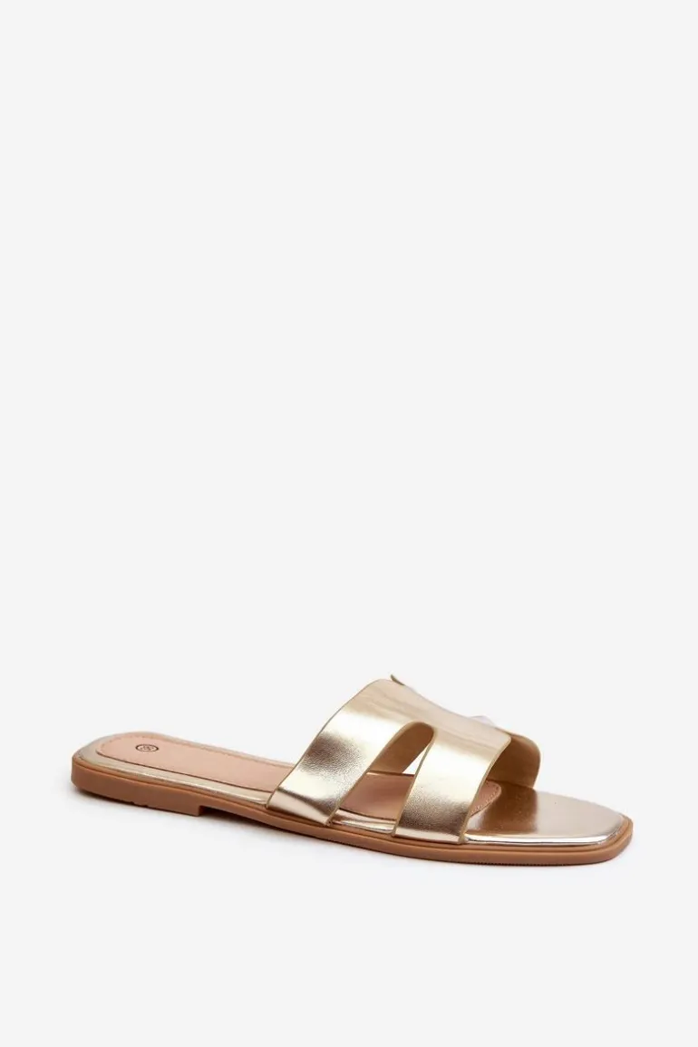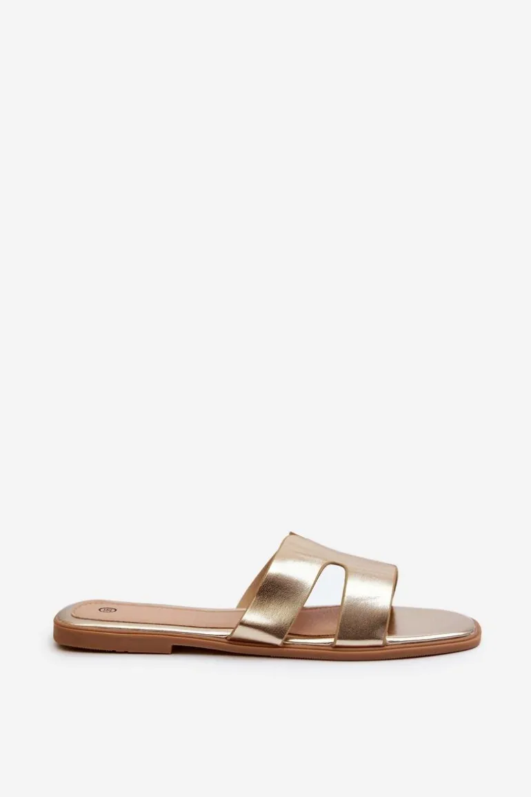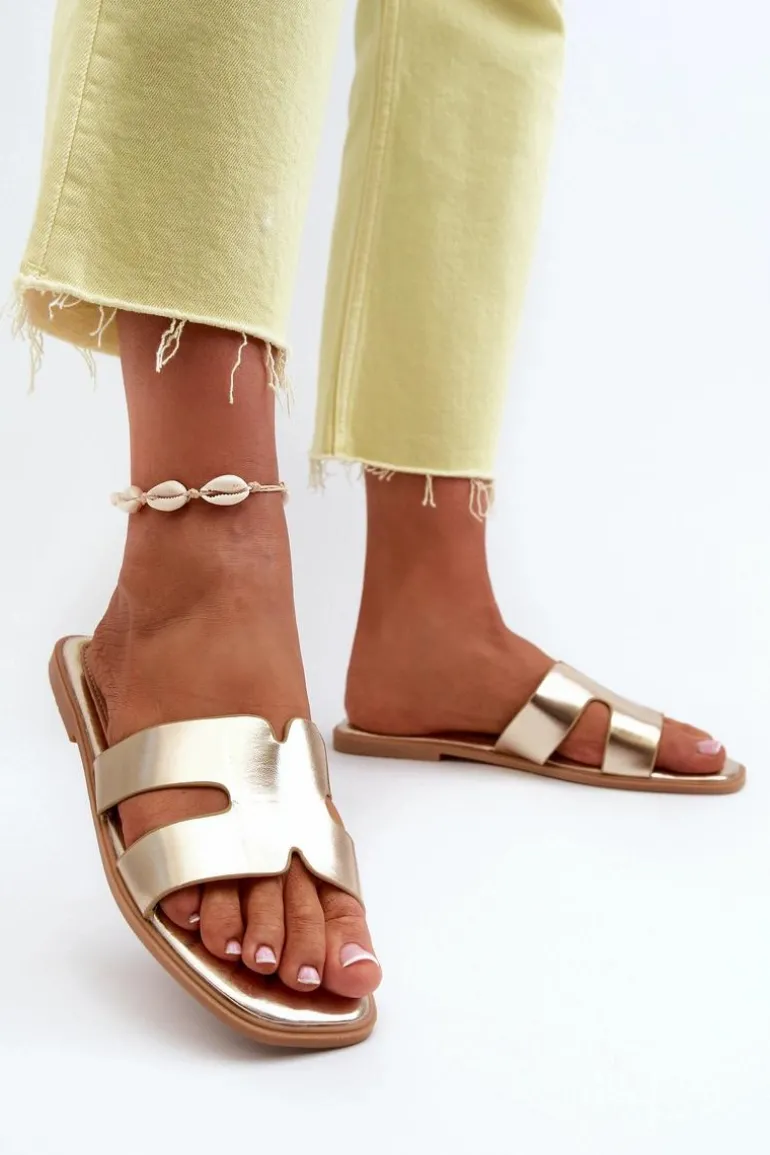 Damskie Płaskie Klapki Z Wycięciami Złote Fiviama