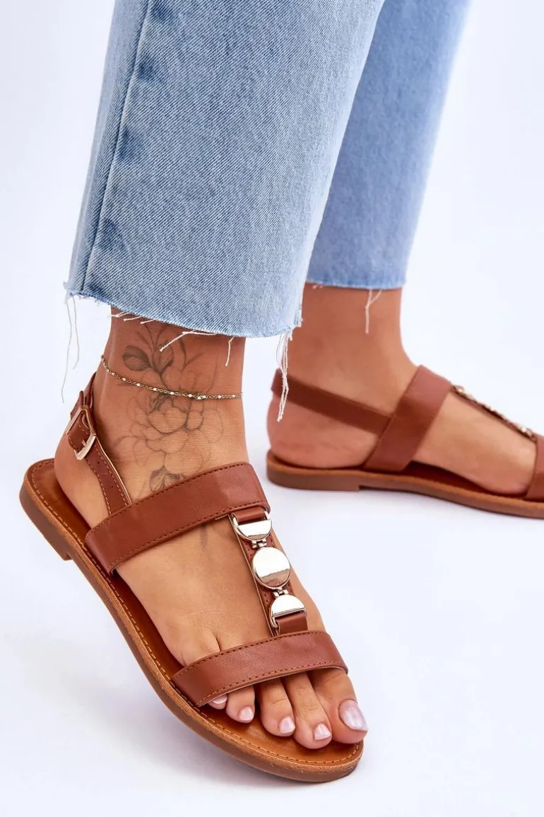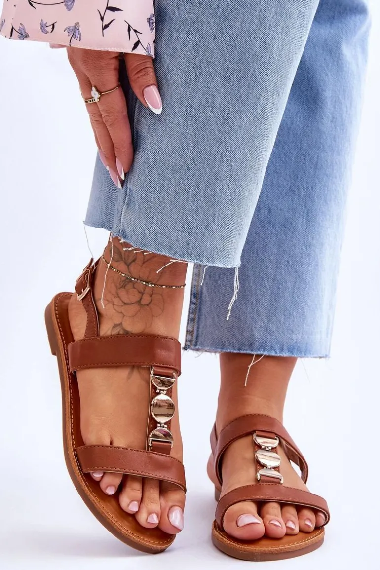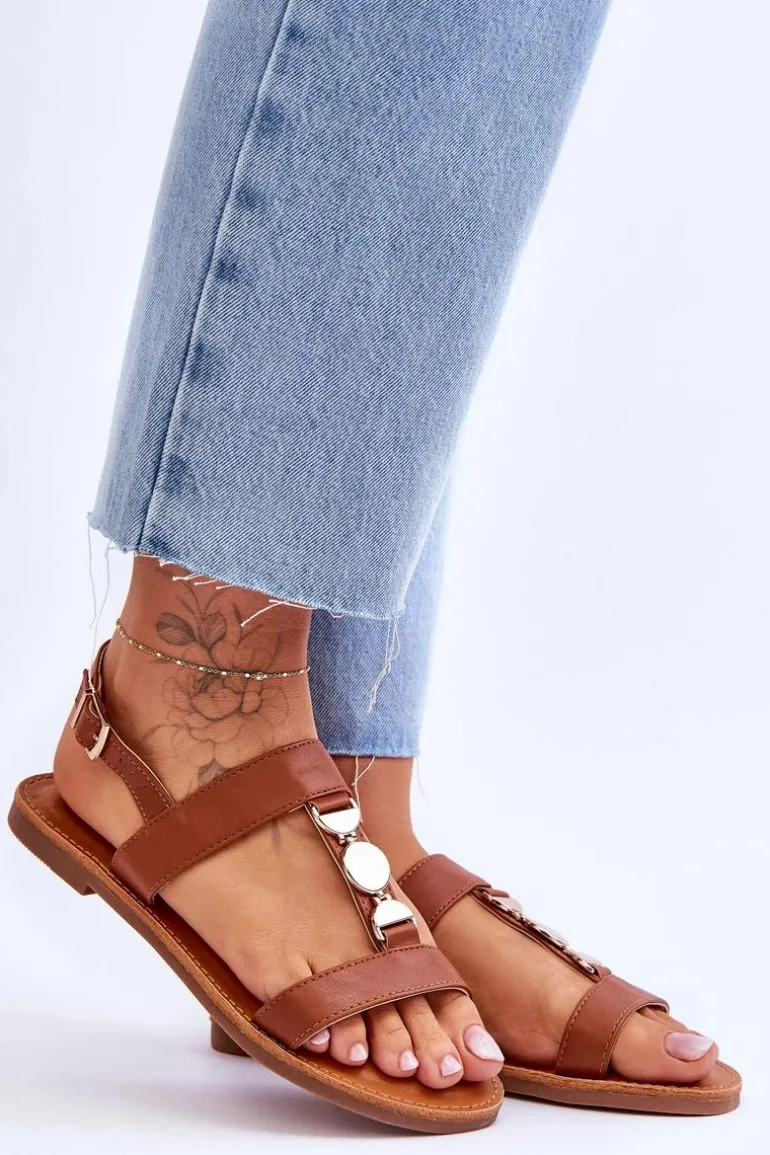 Damskie sandałki zostały wykonane z eko skóry. Model ten posiada zdobienie na paseczku w postaci kół. Sandałki są zapinane na regulowany pasek ze sprzączką. Wygodna wkładka z eko skóry zapewni komfort podczas użytkowania obuwia. Sandałki osadzono na płaskim obcasie z antypoślizgową podeszwą. Przy wyborze rozmiaru prosimy kierować się tabelą rozmiarów.