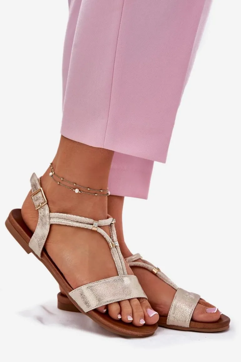 Damskie Płaskie Sandały Z Paskami S.Barski KV51-120 Złote