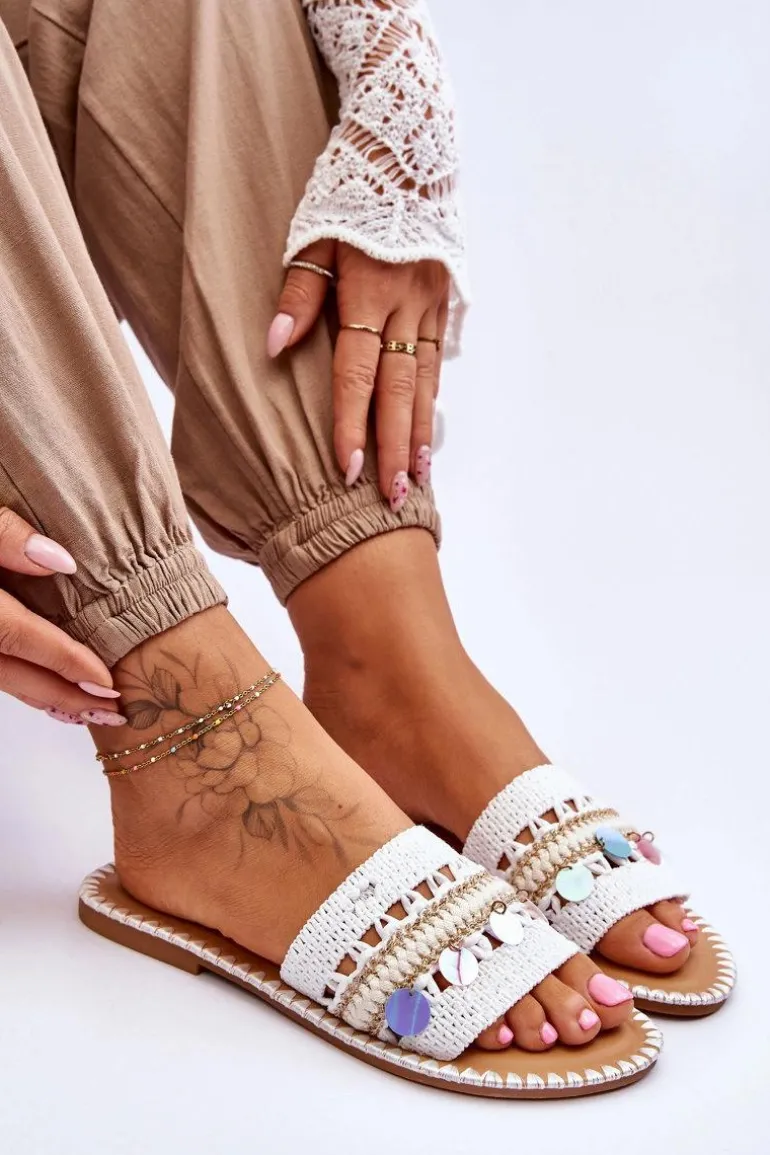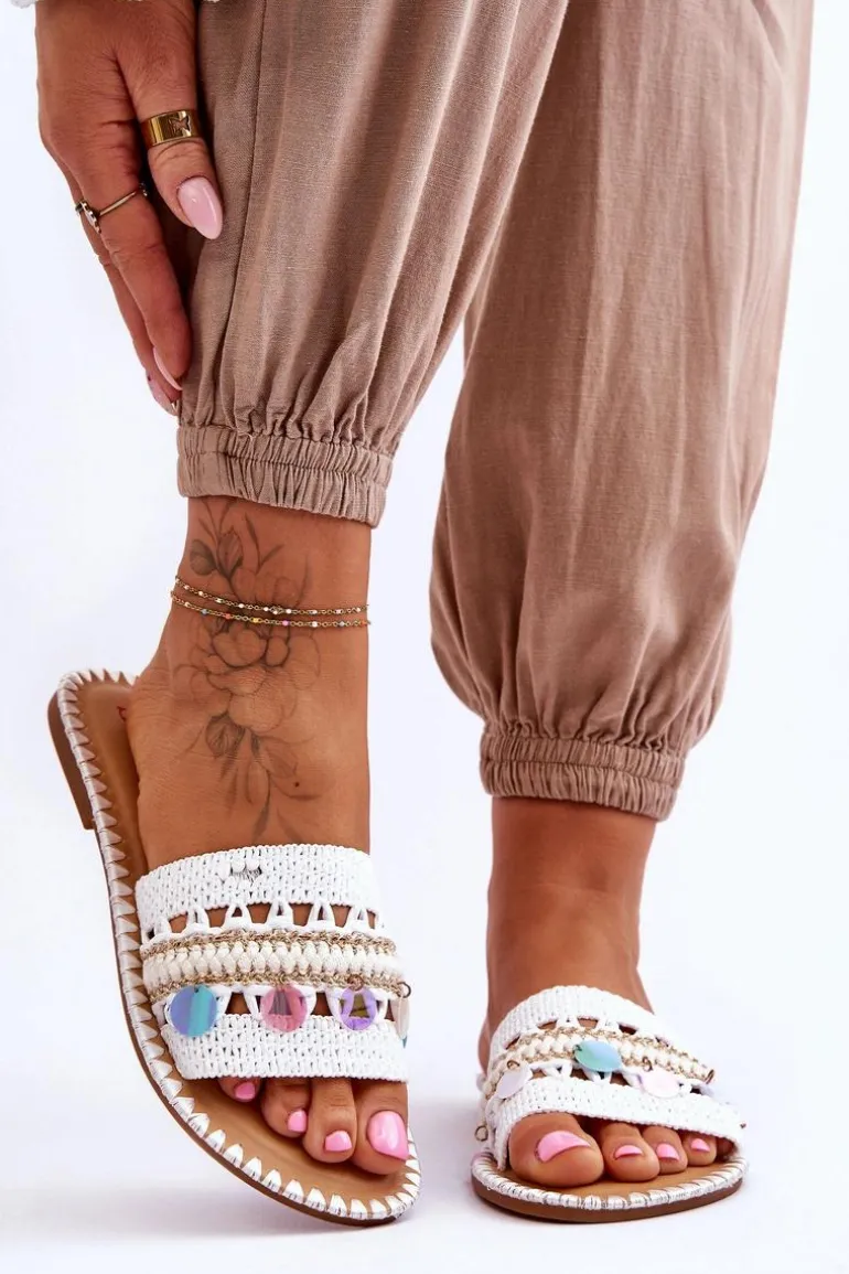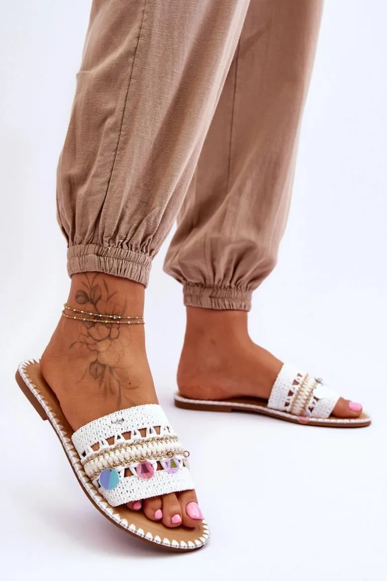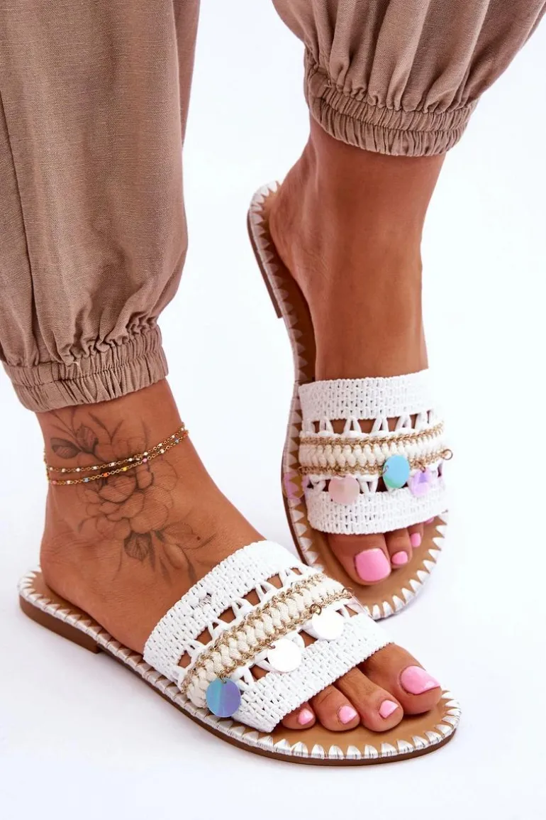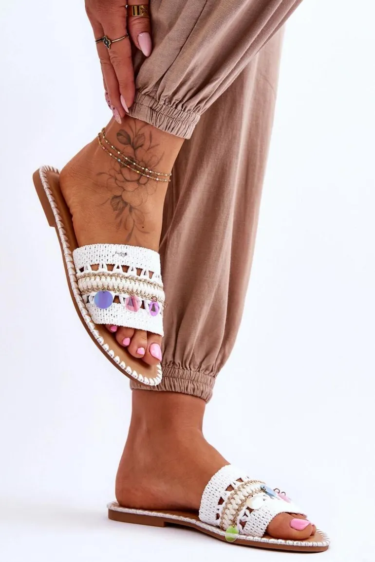 Damskie Plecione Zdobione Klapki Białe Millano
