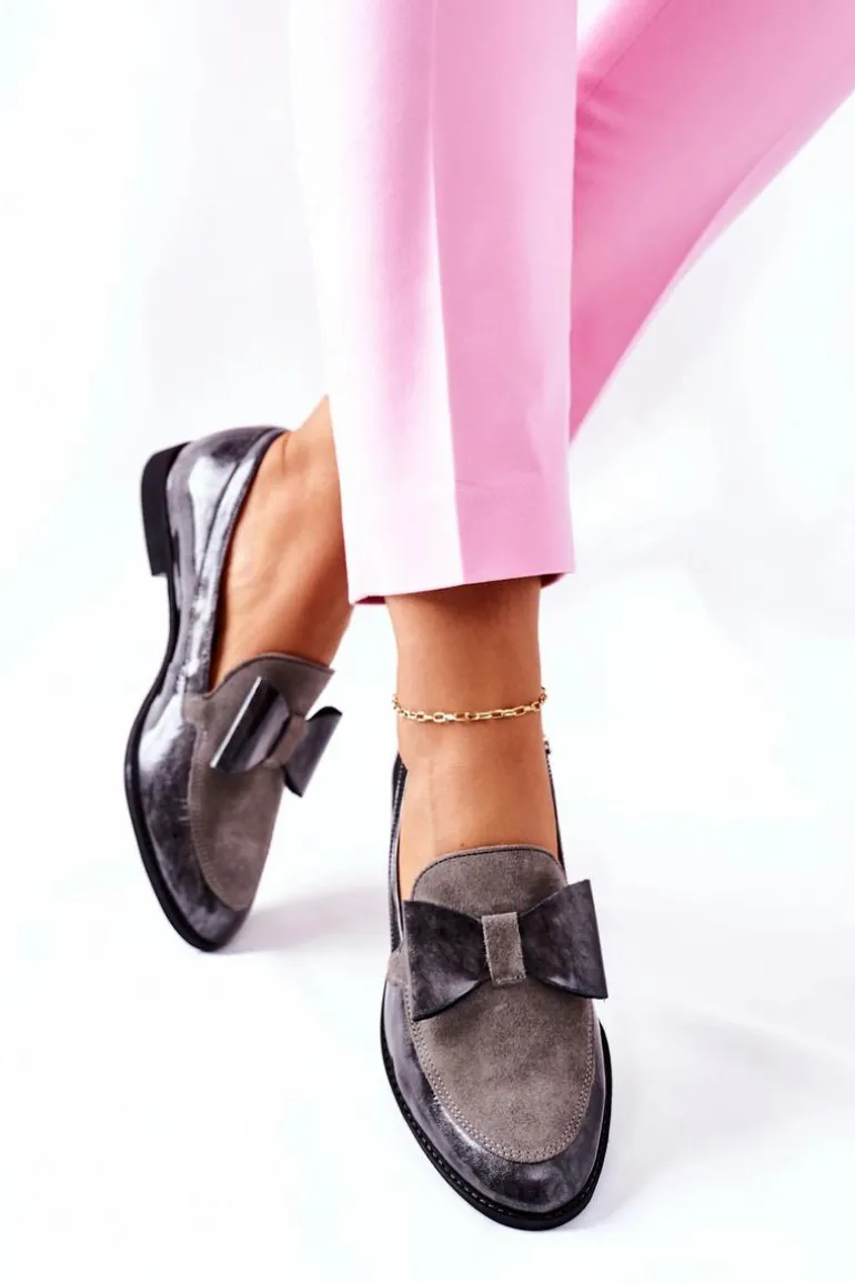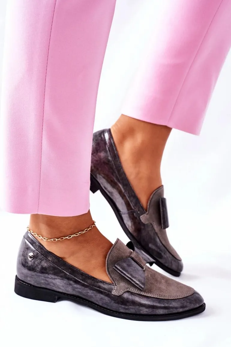Damskie Półbuty Maciejka Lakierowane Loafery Szare 04099-03/00-1