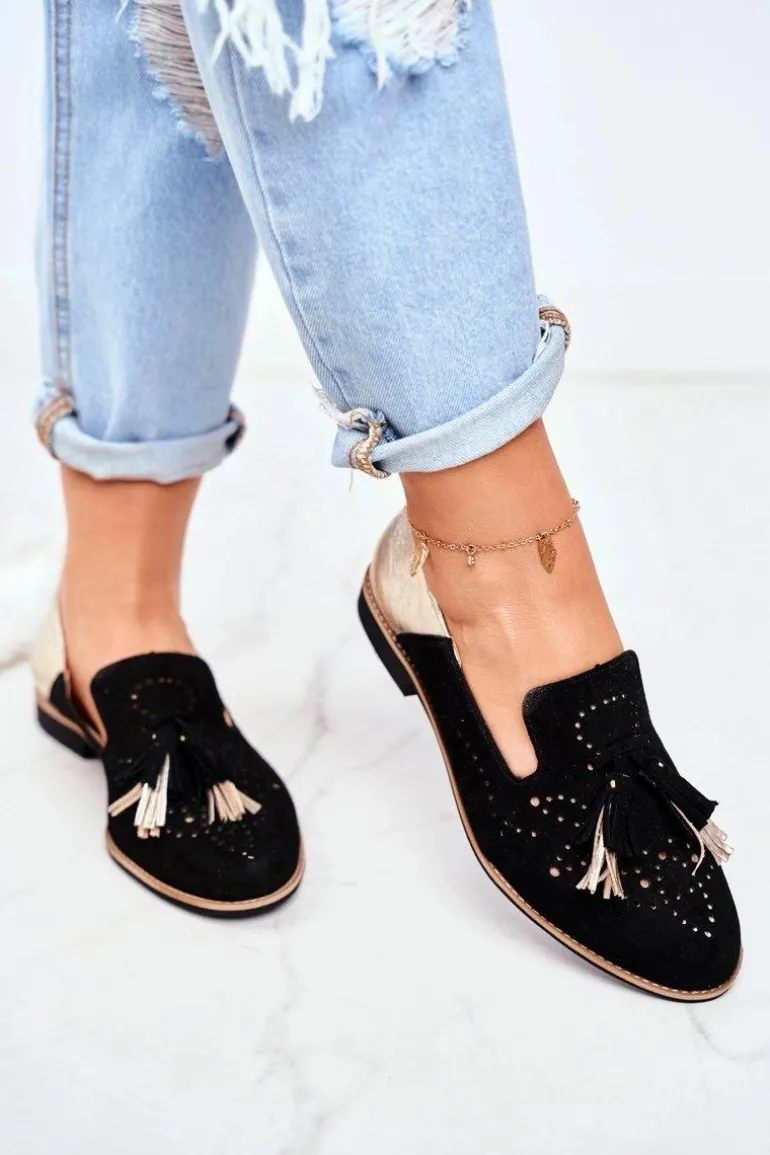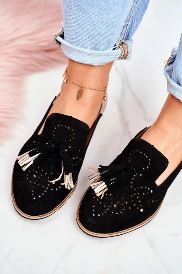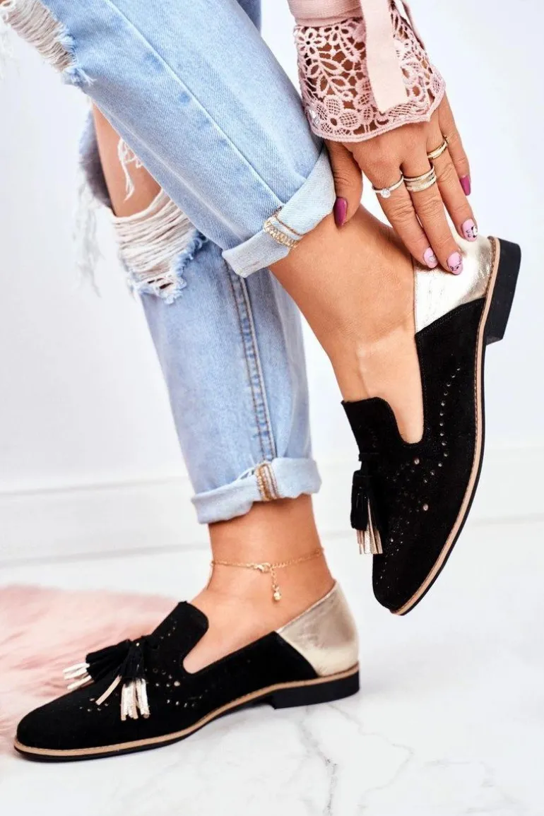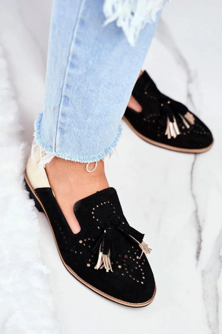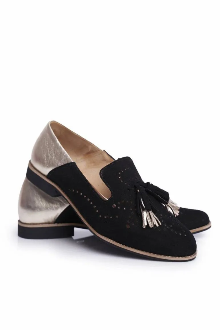 Damskie Półbuty Maciejka Skórzane Mokasyny Czarne 04484-01/00-5