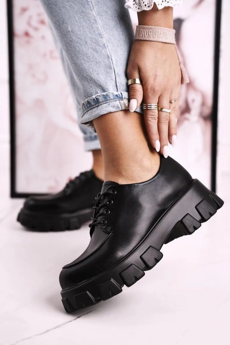 Damskie Półbuty Oxfordy Na Masywnej Platformie S.Barski HX23 Czarne