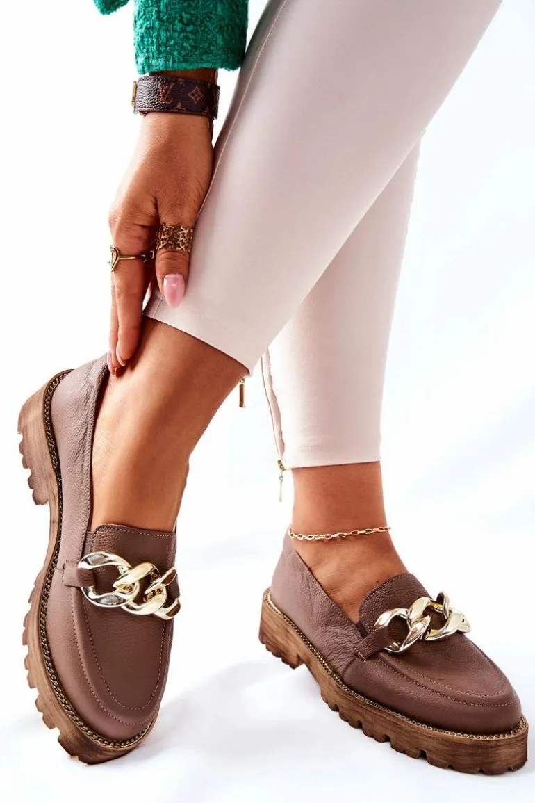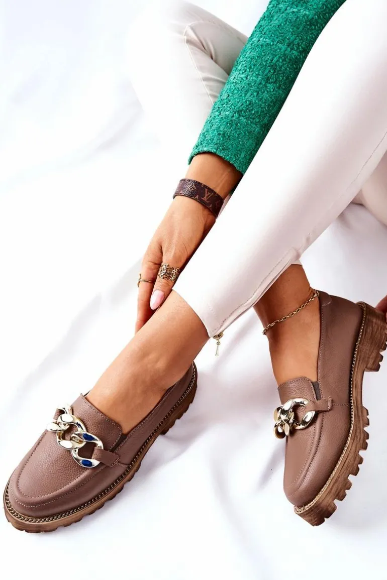 Klasyczne półbuty w stylu przepięknych loaferów! Buty zostały wykonane z wysokiej jakości skóry naturalnej. Charakterystyczne zdobienie w postaci łańcucha sprawi, że stworzymy z nimi wiele wspaniałych stylizacji. Wysoka podeszwa oraz obcas, który uniesie naszą sylwetkę. Przy wyborze rozmiaru prosimy sugerować się tabelą rozmiarów.