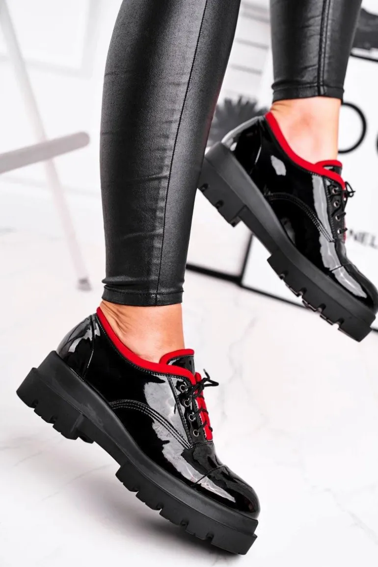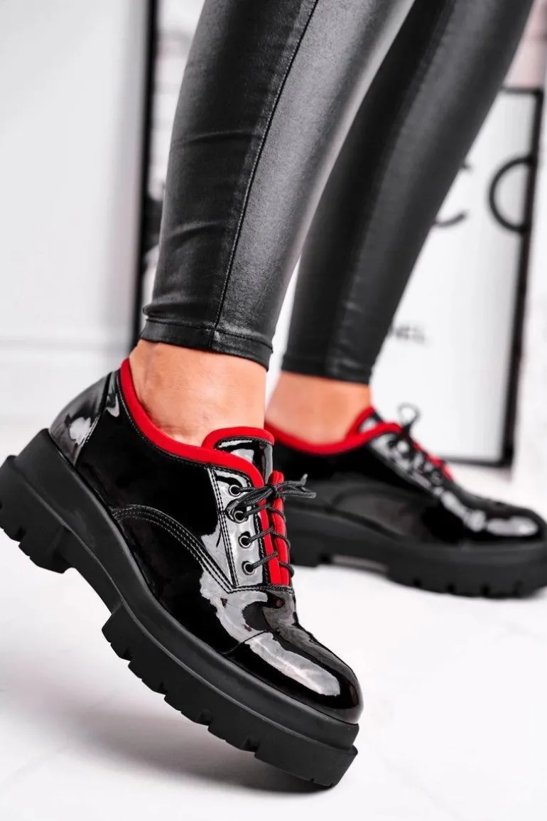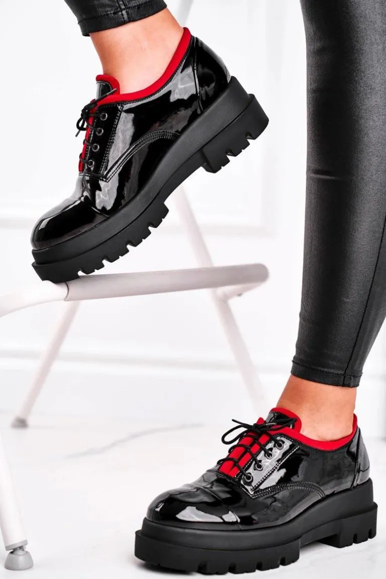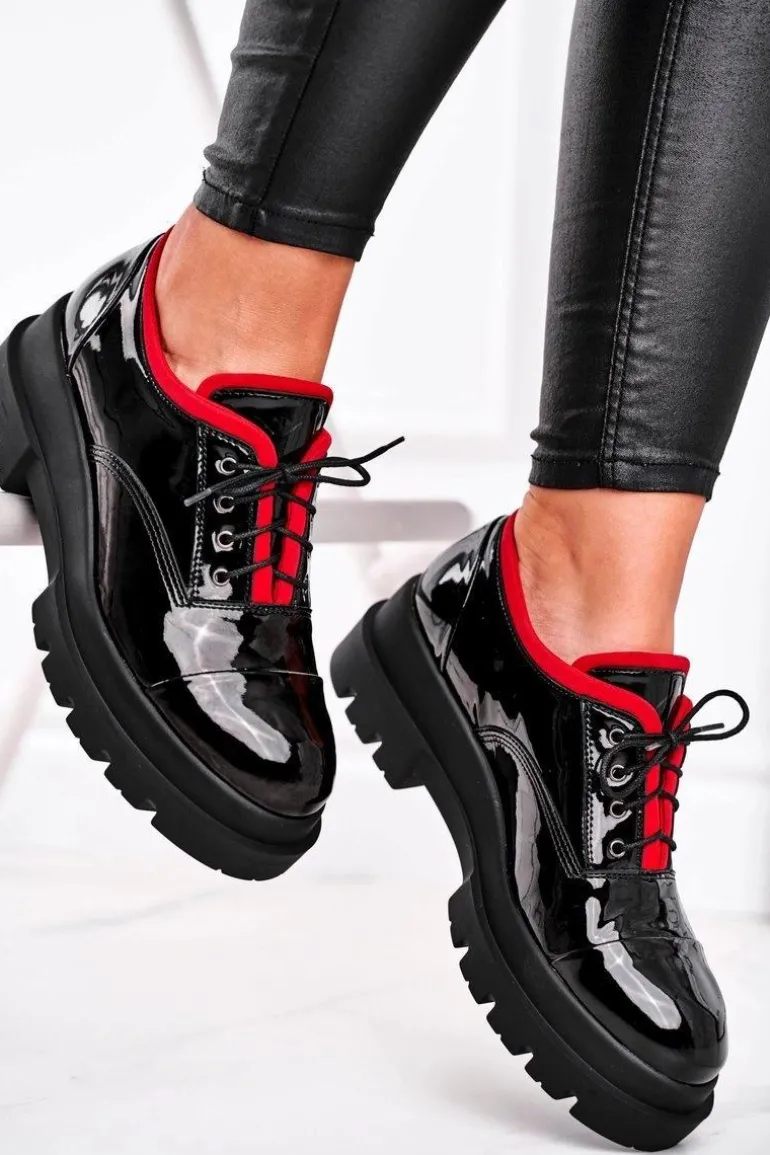 Półbuty w klasycznym kroju wcale nie muszą być nudne. Potwierdzeniem tego stwierdzenia są te wspaniałe buty marki Visconi. Półbuty w całości zostały wykonane z lakierowanej skóry naturalnej. Cholewka wykończona czerwonym materiałem, który idealnie podkreśla ich wyjątkowy styl. Sztywny zapiętek oraz wysoka platforma zadba o idealną stabilizację i komfort podczas chodzenia. Przy wyborze rozmiaru prosimy sugerować się tabelą rozmiarów.