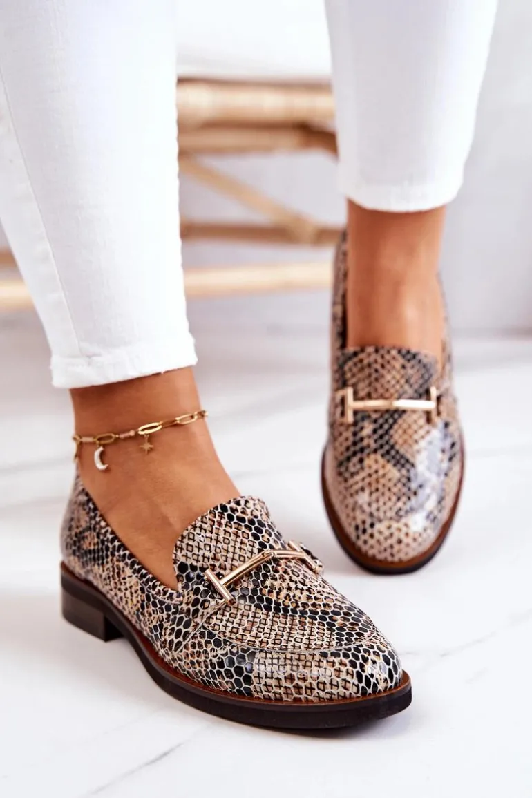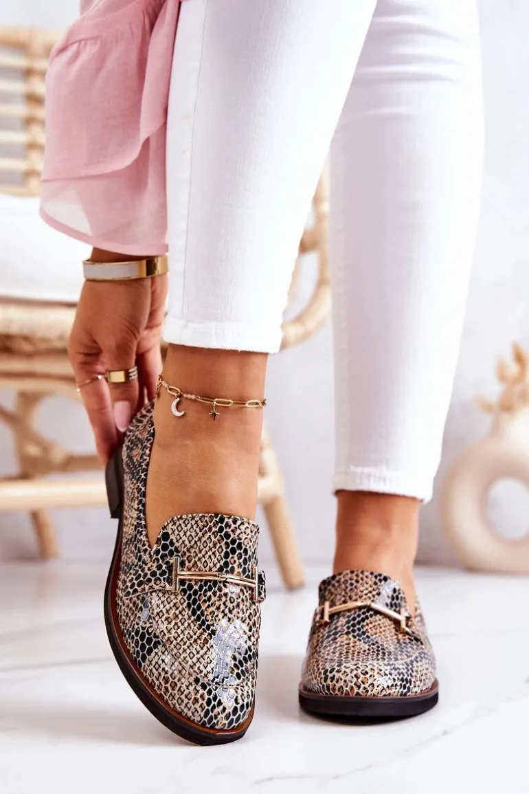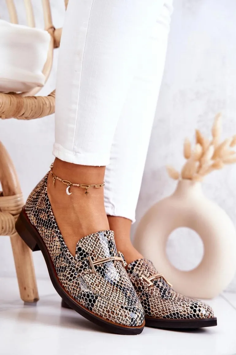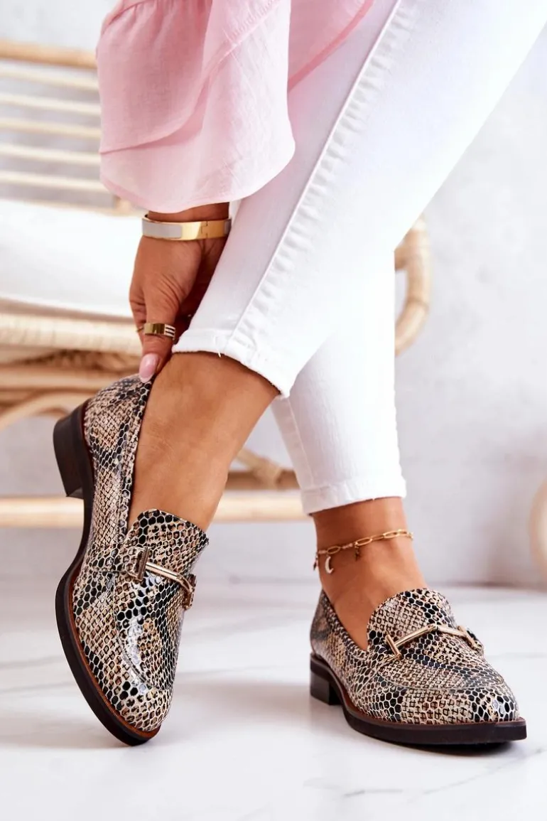 Damskie Półbuty Wężowe Laura Messi 2307 Beżowo-Czarne