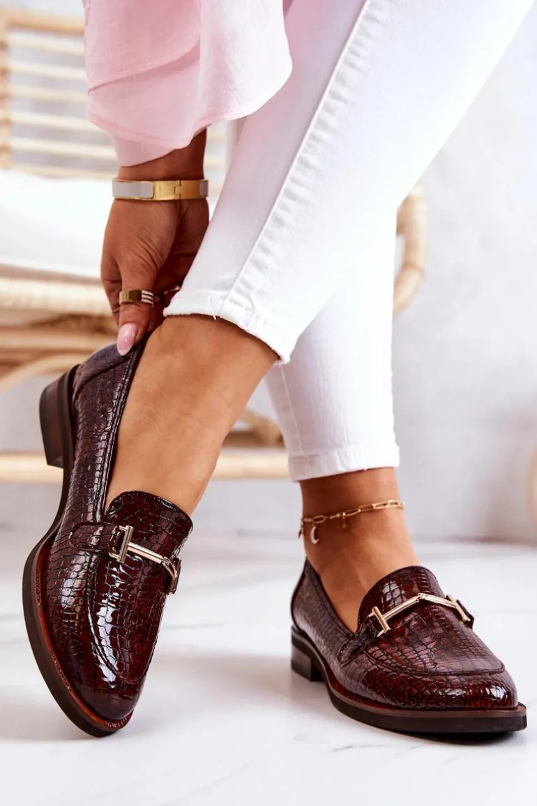Damskie Półbuty Wężowe Laura Messi 2307 Brązowe