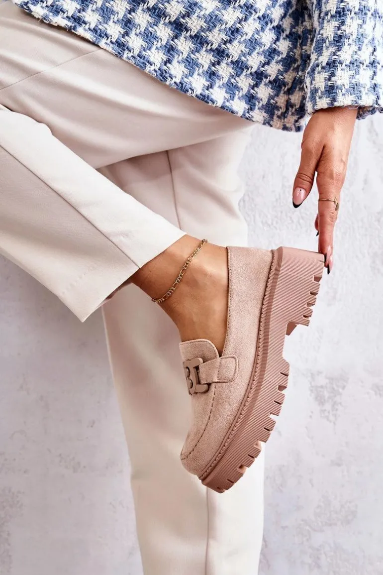 Klasyczne półbuty zostały wykonane z eko zamszu. Na przodzie charakterystyczne zdobienie. Buty te posiadają platformę oraz płaski obcas. Podeszwa ze żłobieniami świetnie odizoluje od nierównego podłoża. Wygodne, a zarazem modne półbuty świetnie sprawdzą się do pracy, na zakupy czy na spotkanie z przyjaciółmi. Miękka wkładka wykonana z eko skóry zapewni komfort podczas użytkowania. Koniecznie musisz je mieć! Przy wyborze rozmiaru prosimy sugerować się tabelą rozmiarów.