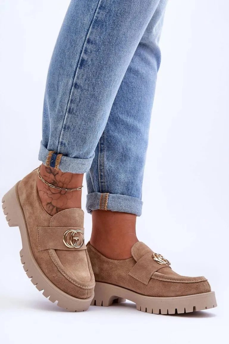 Eleganckie półbuty damskie zostały wykonane ze skóry naturalnej. Osadzone na masywnej platformie i płaskim, stabilnym obcasie. Wkładka ze skóry naturalnej, a podeszwa wykonana z gumowego tworzywa. Model klasyczny, wsuwany. Dodatkowo pod językiem znajduje się gumka ściągająca, która sprawi, że but będzie idealnie dopasowany do stopy. Buty te sprawdzą się w wielu stylizacjach! Koniecznie sprawdź całą naszą kolekcję półbutów! Przy wyborze rozmiaru prosimy sugerować się tabelą rozmiarów.