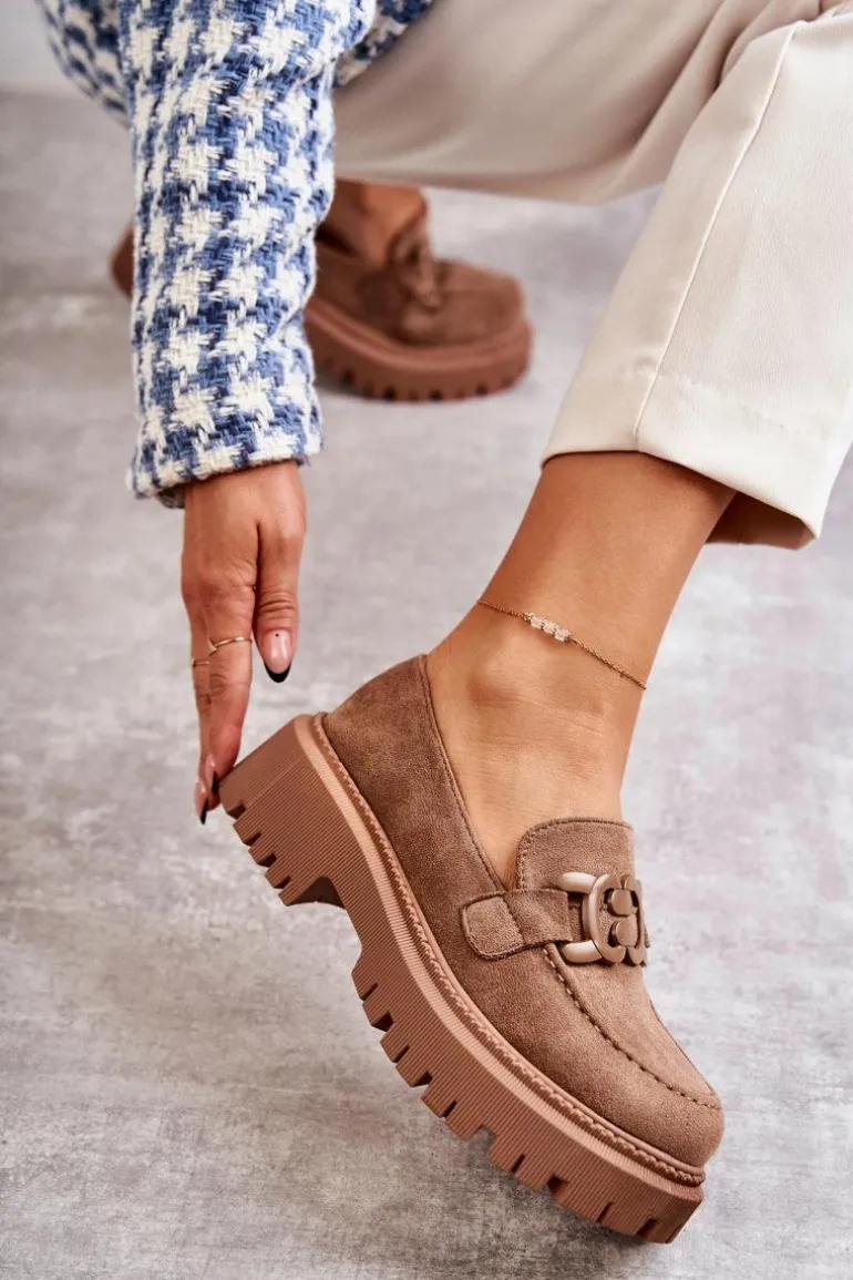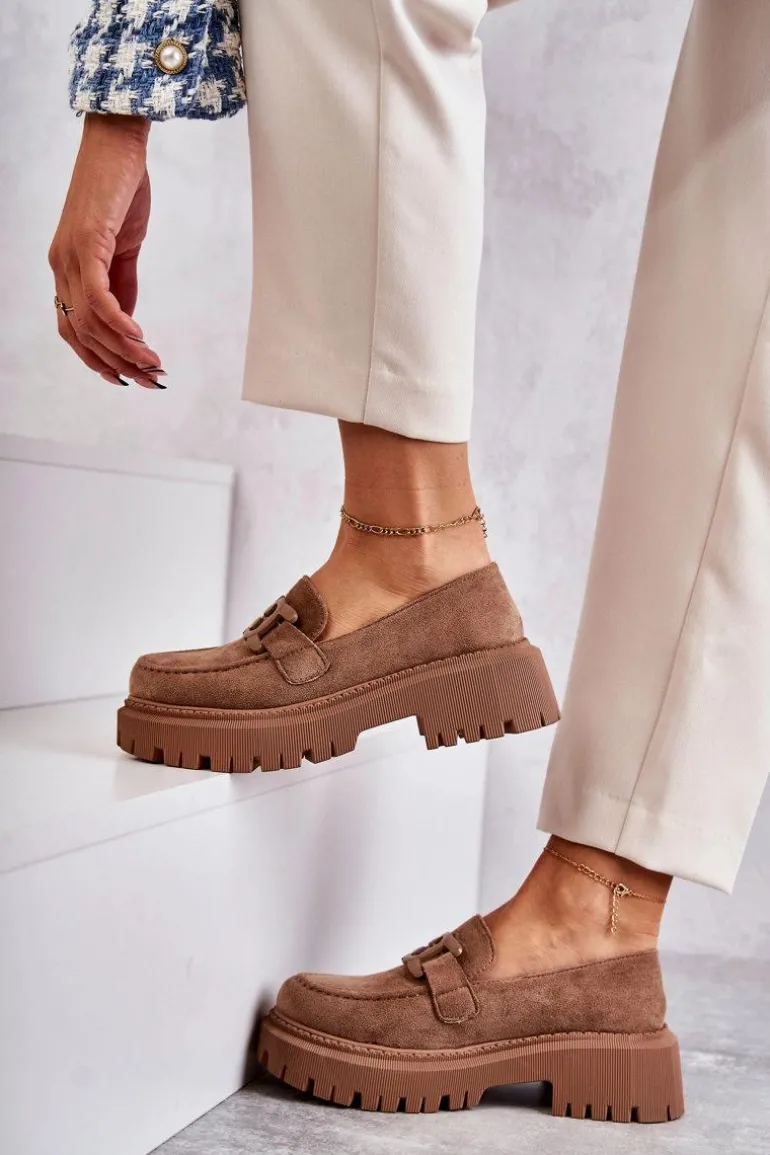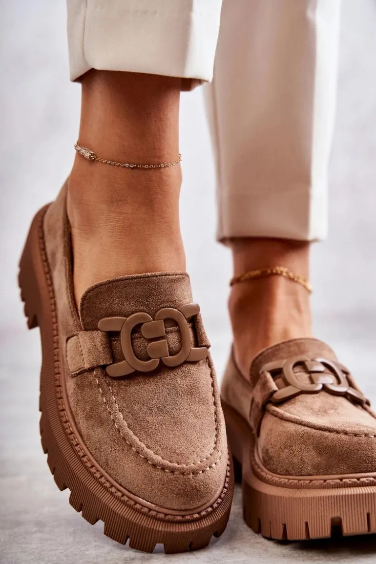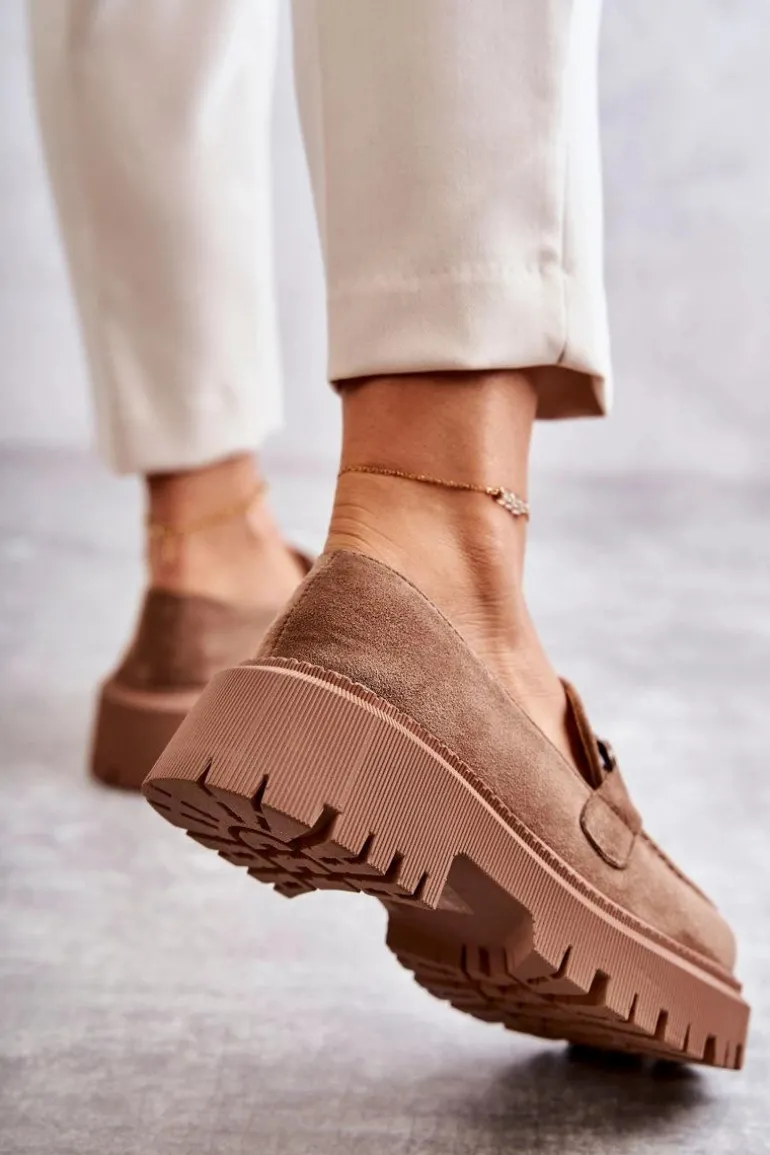 Damskie Półbuty Zamszowe Z Ozdobą Ciemnobeżowe Leeza