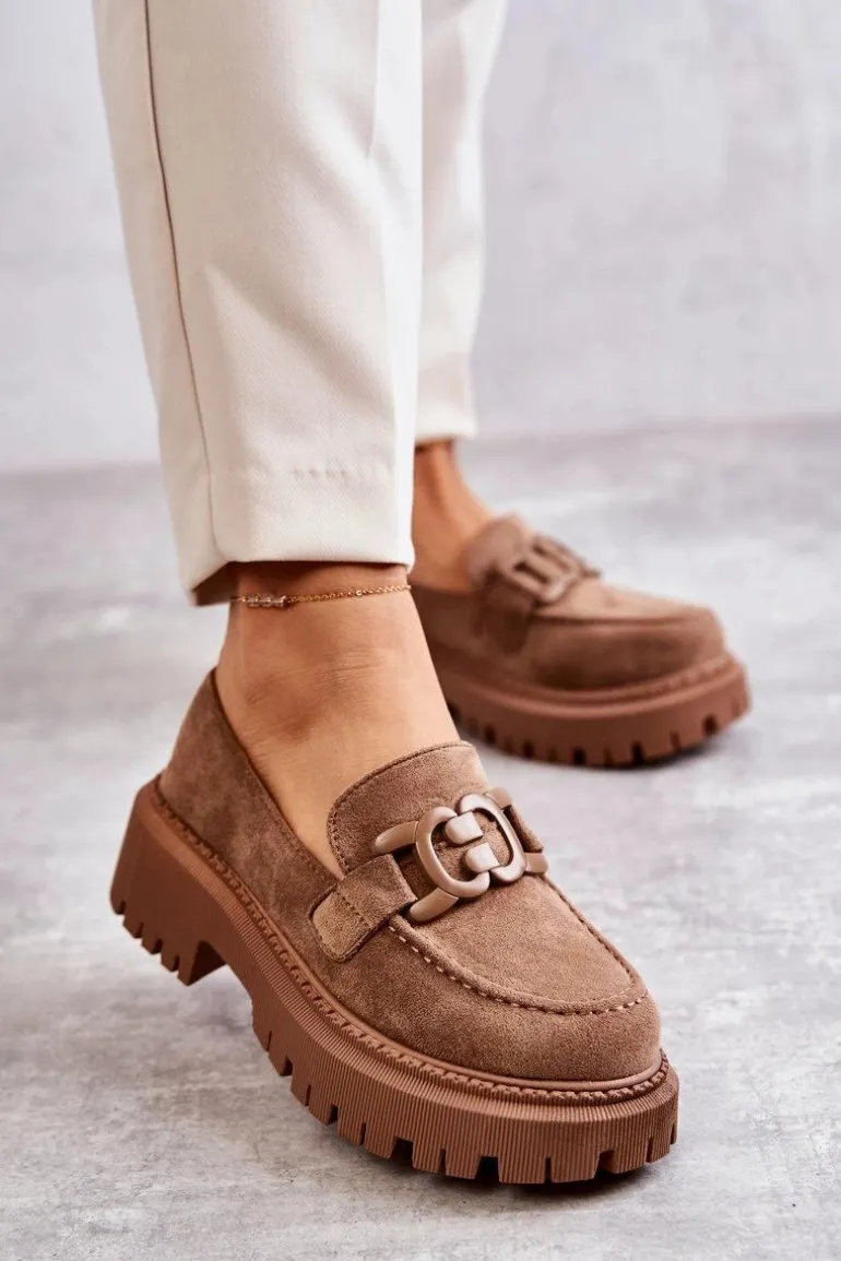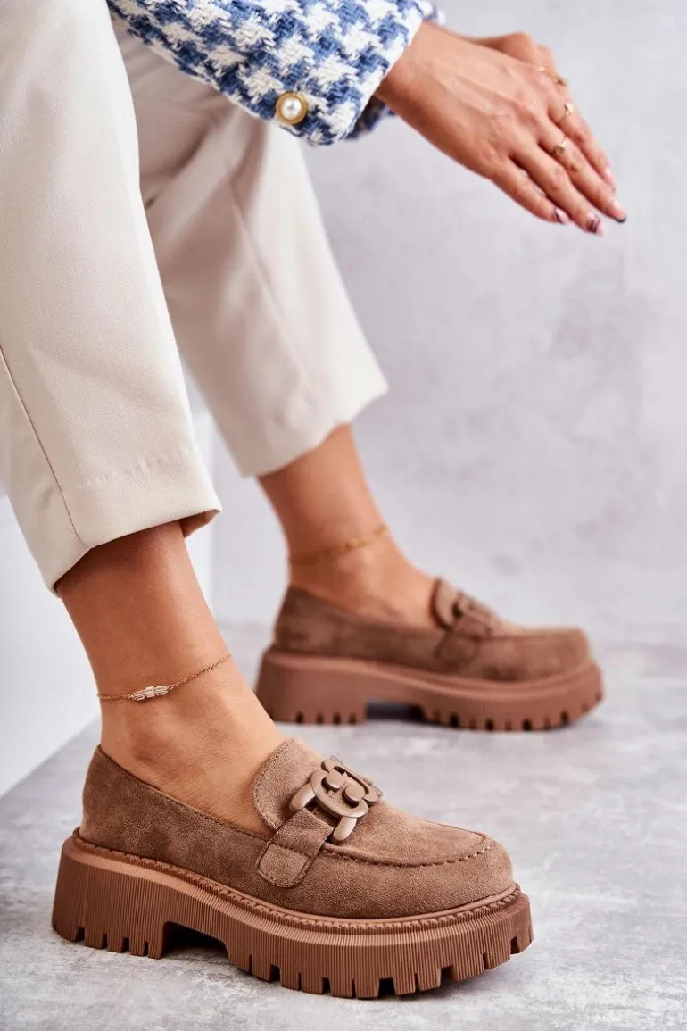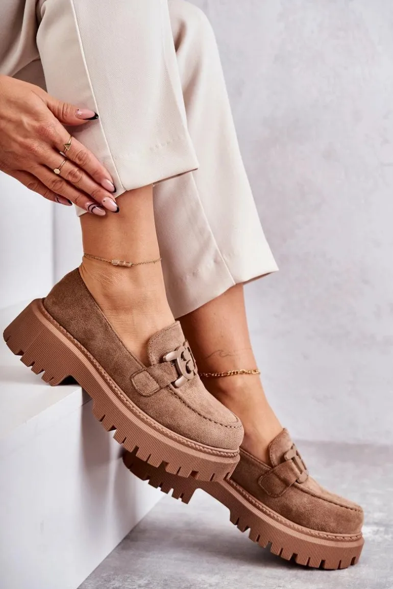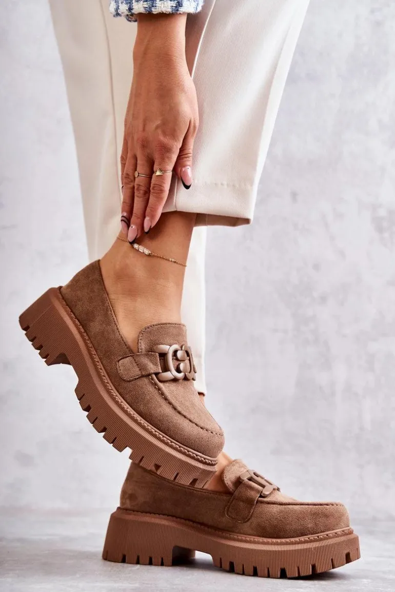 Damskie Półbuty Zamszowe Z Ozdobą Ciemnobeżowe Leeza