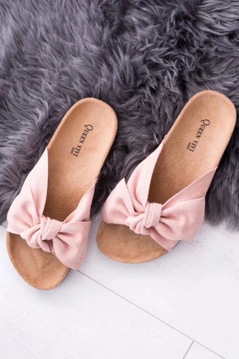 Damskie Różowe Klapki Na Korku Kokardki Dominica
