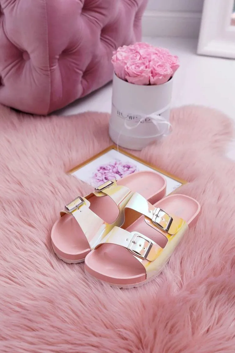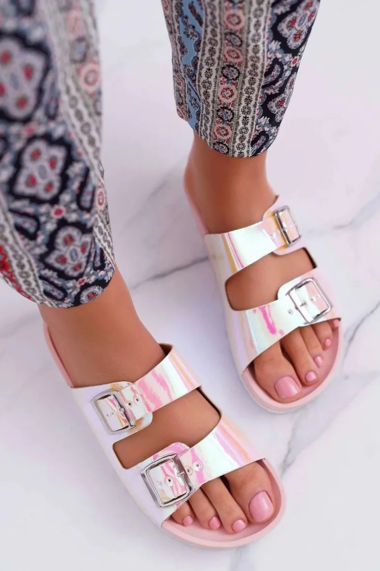 Damskie Różowe Profilowane Klapki Opalizujące Astramos