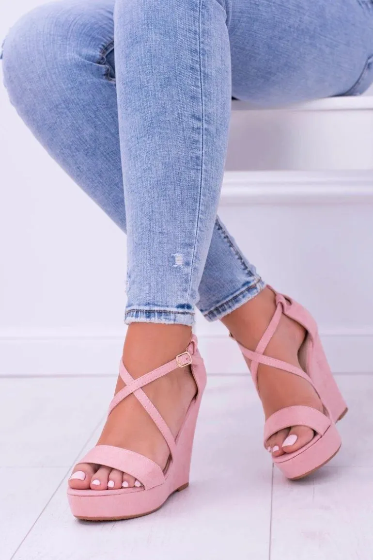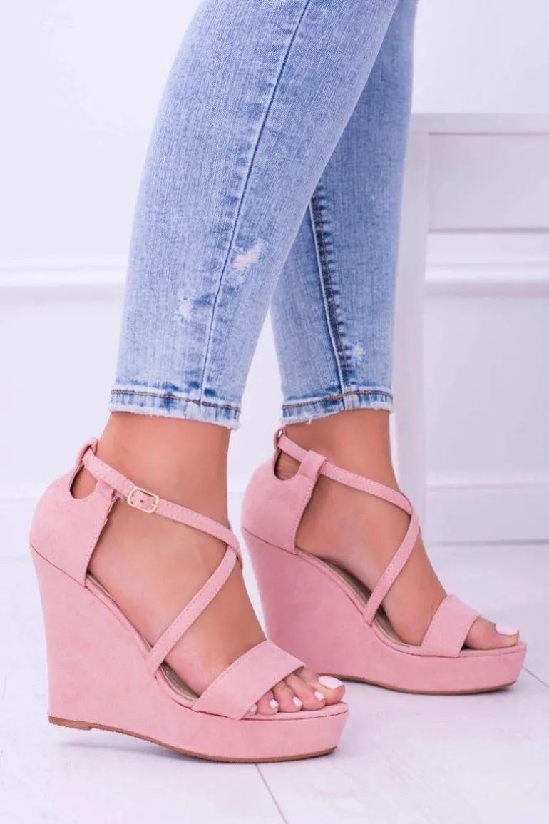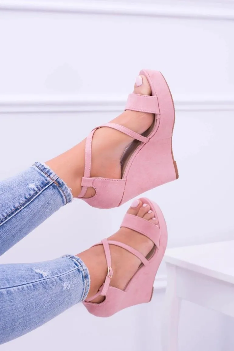 Damskie Różowe Zamszowe Sandały Na Koturnie Eline