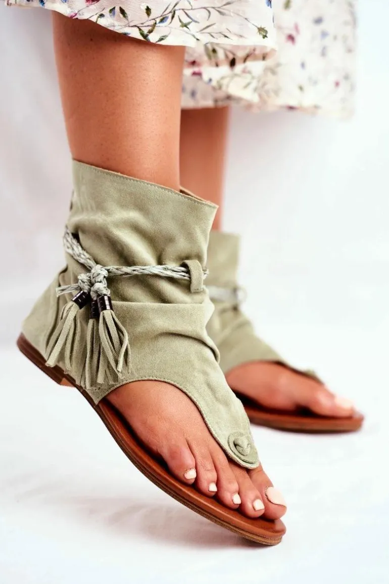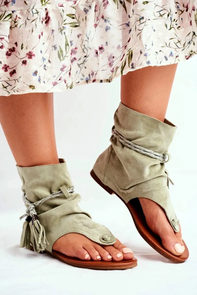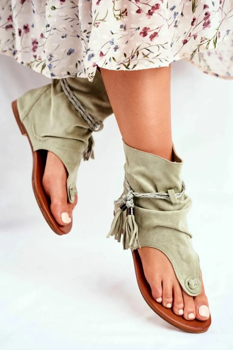 Damskie Sandałki Japonki Z Cholewką Zielone SL1011 Madrit