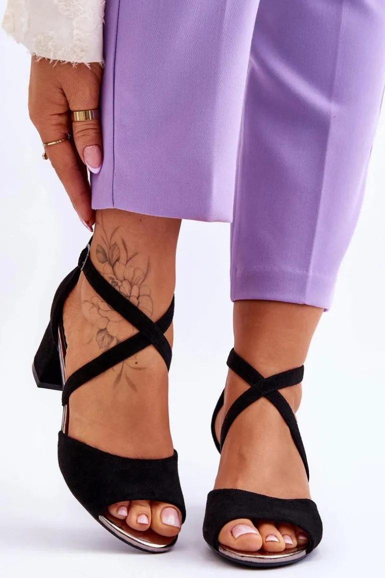 Damskie Sandałki Na Niskim Obcasie Czarne Quinn