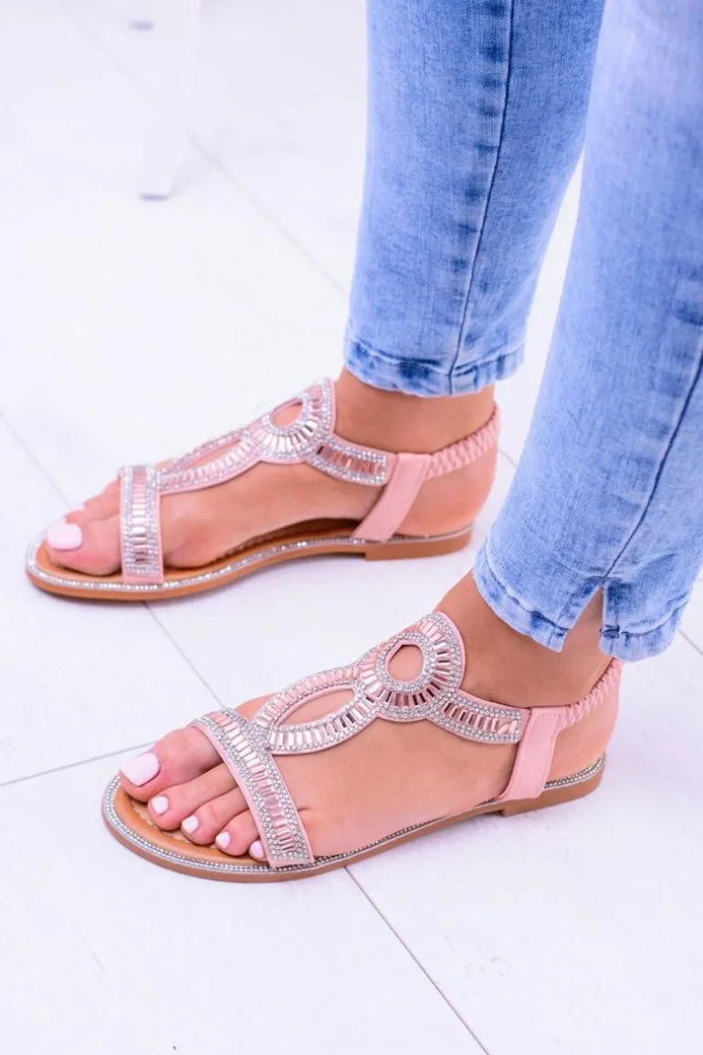 Damskie Sandałki z Cyrkoniami Rent Pudrowy Róż