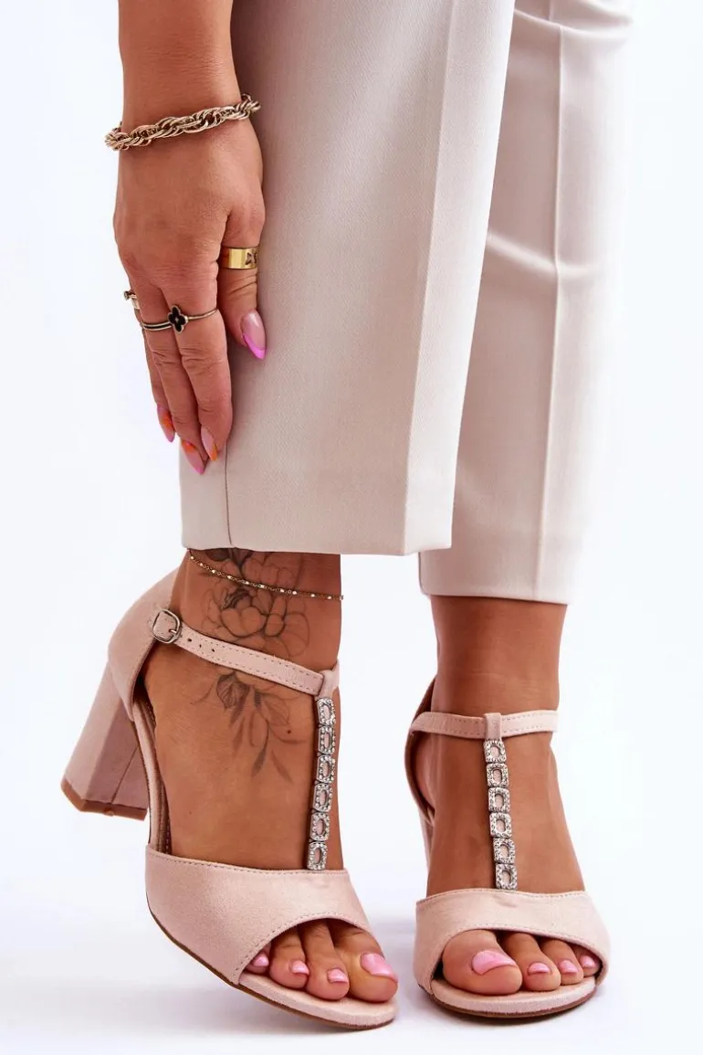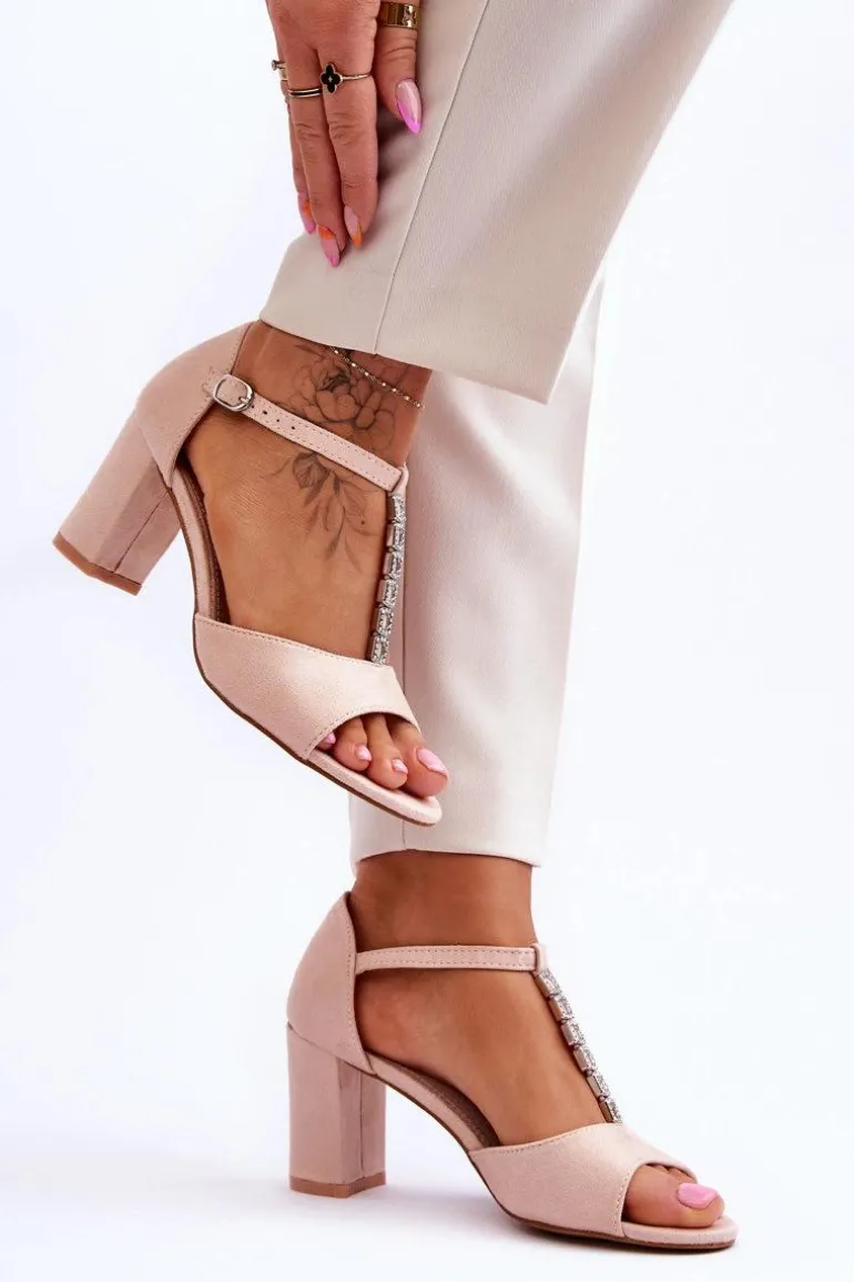 Damskie Sandałki Zamszowe Na Słupku Beżowe Florines