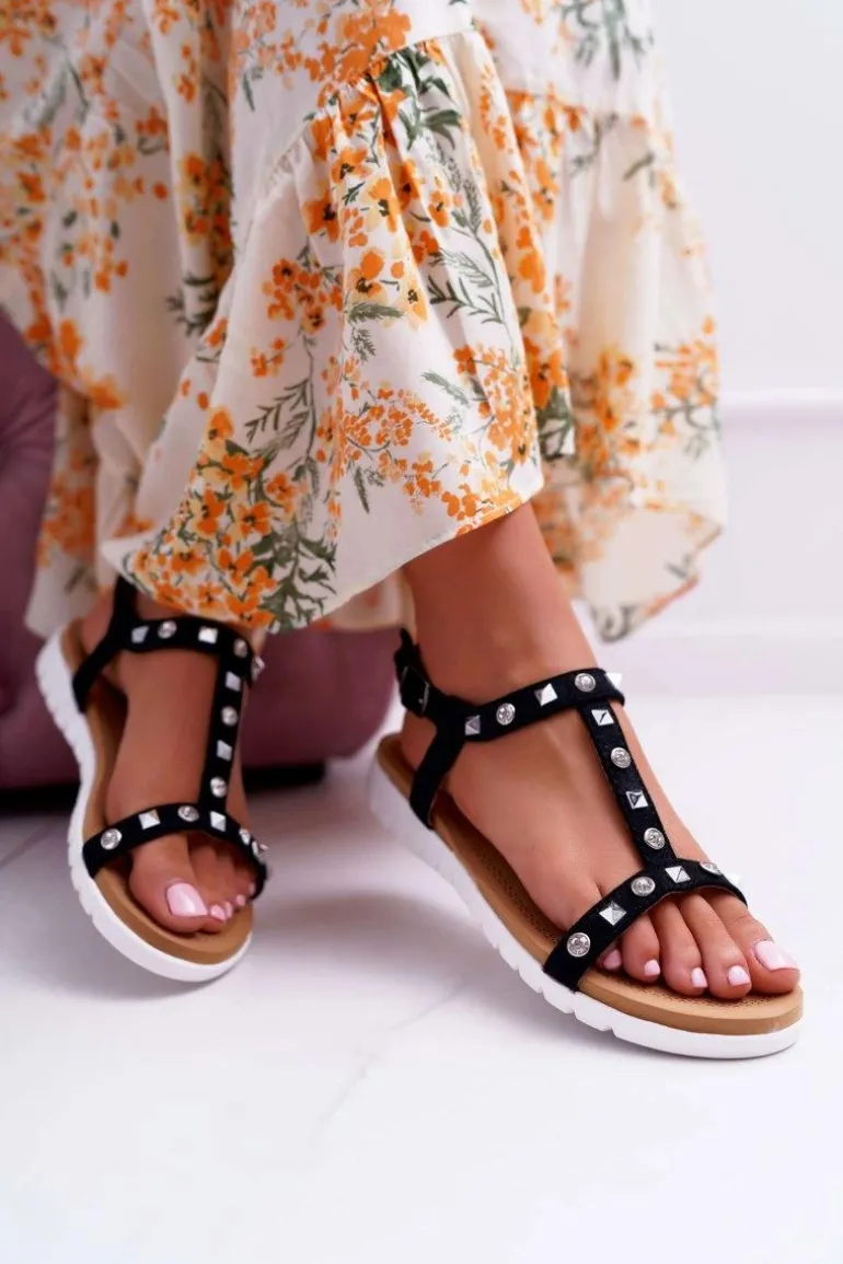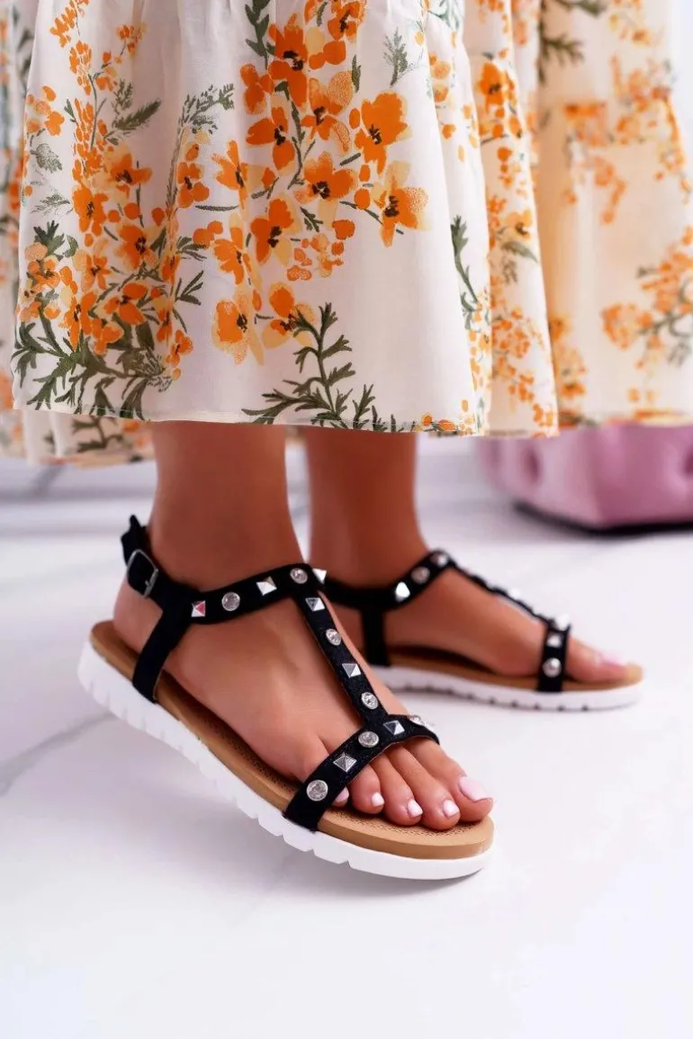 Damskie Sandały Czarne Lu Boo z Ćwiekami Mariachi