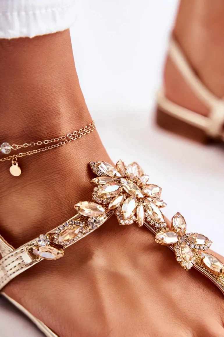 Damskie sandały idealnie prezentują się z letnimi stylizacjami. Model w stylu japonek. Buty te zostały wykonane z eko skóry. Na paseczkach znajdują się piękne kryształy oraz cyrkonie. Zapinane na sprzączkę z regulowanym paskiem. Sandały te są osadzone na płaskim obcasie z antypoślizgową podeszwą. Koniecznie powinnaś je mieć w swojej szafie! Przy wyborze rozmiaru prosimy kierować się tabelą rozmiarów.