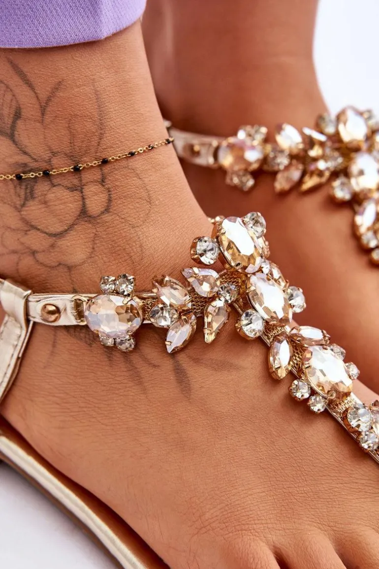 Damskie sandały o fasonie japonek to idealny wybór na cieplejsze dni! Zostały wykonane z eko skóry. Posiadają zdobienia na całości w postaci kamieni i dżetów. Zapinane wokół kostki na regulowany pasek ze sprzączką. Osadzone na płaskim obcasie. Wygodna w użytkowaniu wkładka została wykonana z eko skóry. Przy wyborze rozmiaru prosimy kierować się tabelą rozmiarów.