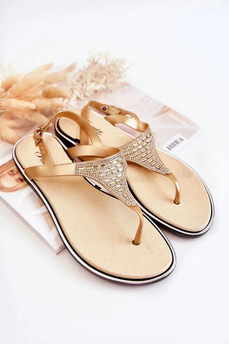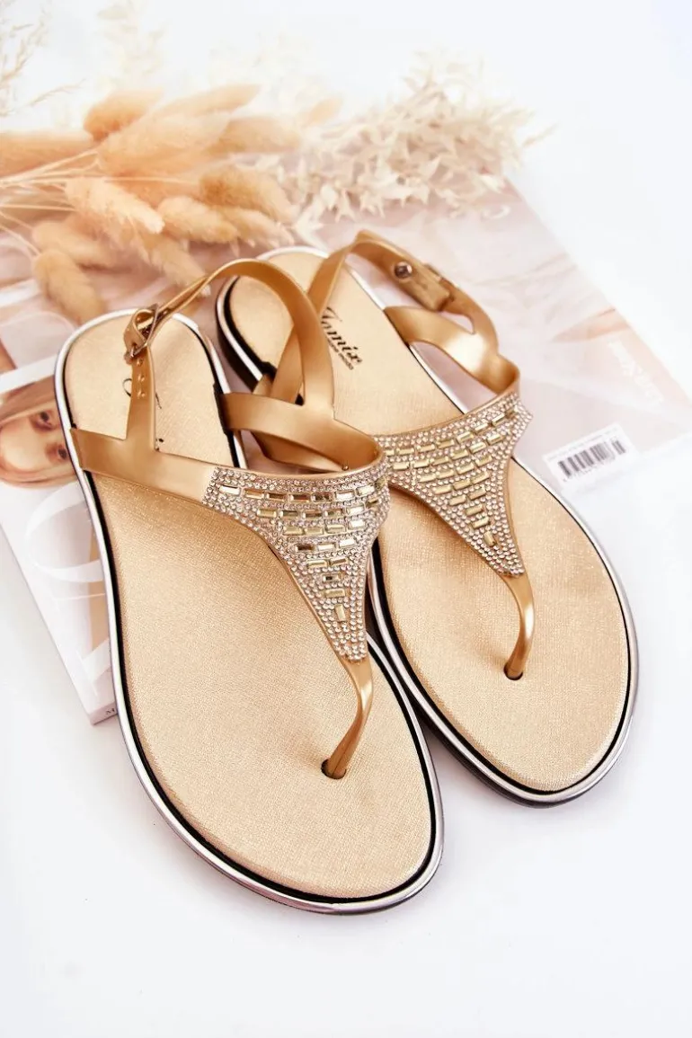 Damskie sandały są idealnym obuwiem na upalne dni! Model w stylu japonek. Buty te zostały wykonane w całości z gumowego tworzywa. Na paseczkach znajdują się piękne dżety imitujące cyrkonie. Zapinane na sprzączkę z regulowanym paskiem. Sandały te są osadzone na płaskim obcasie z antypoślizgową podeszwą. Ten niezwykły model powinien znaleźć się właśnie w Twojej szafie! Przy wyborze rozmiaru prosimy kierować się tabelą rozmiarów.