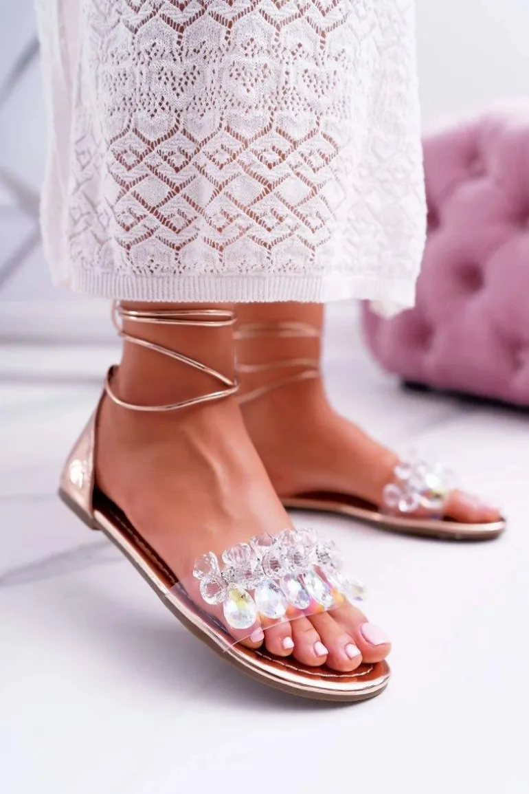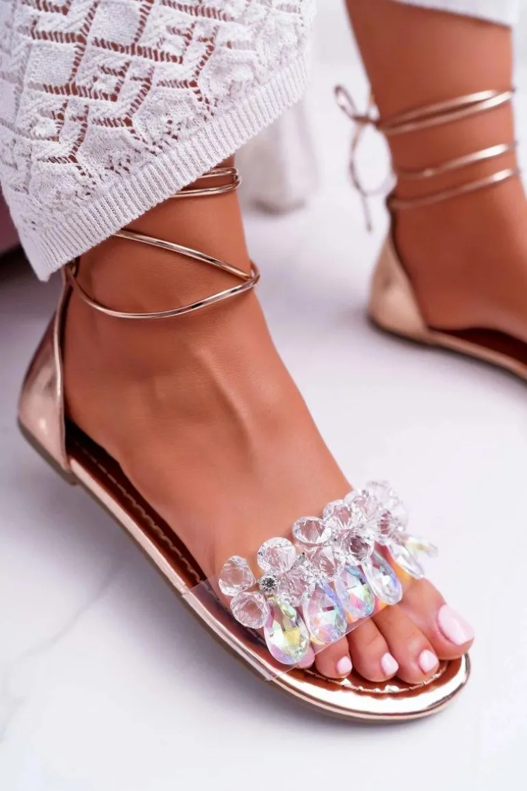 Sandały to nieodłączny element kobiecych letnich stylizacji. Można je założyć dosłownie do wszystkiego! Ten model wyróżnia się kryształowymi zdobieniami oraz efektownym wiązaniem wokół kostki. Przy wyborze rozmiaru prosimy sugerować się tabelą rozmiarów, która dostępna jest po najechaniu bądź kliknięciu w dany rozmiar.