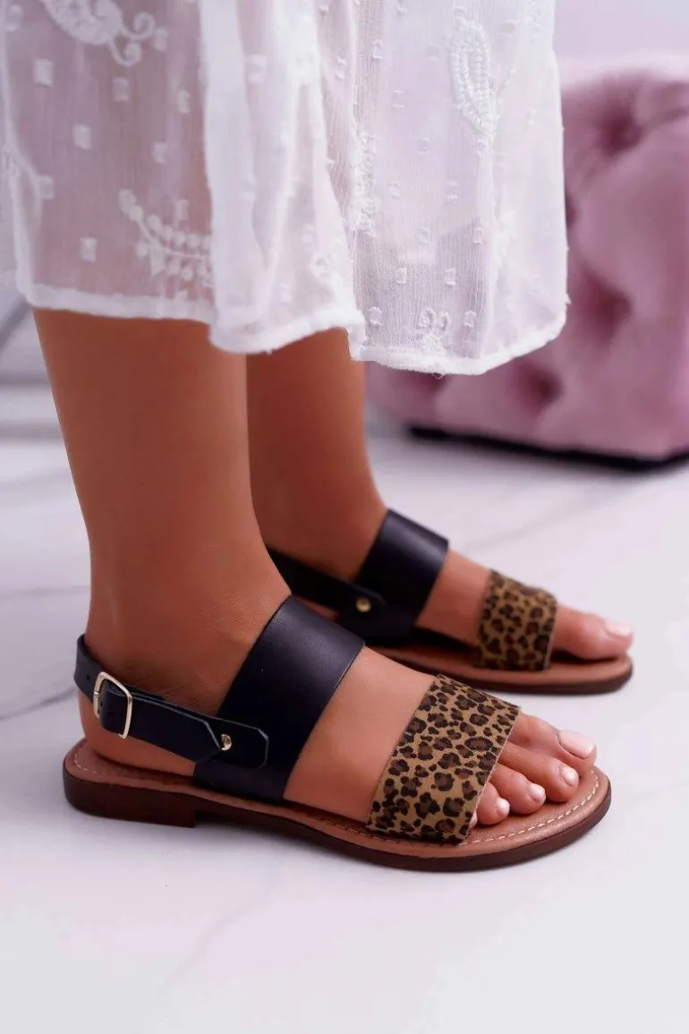Damskie Sandały Maciejka Skórzane Panterka Czarne IT001-03