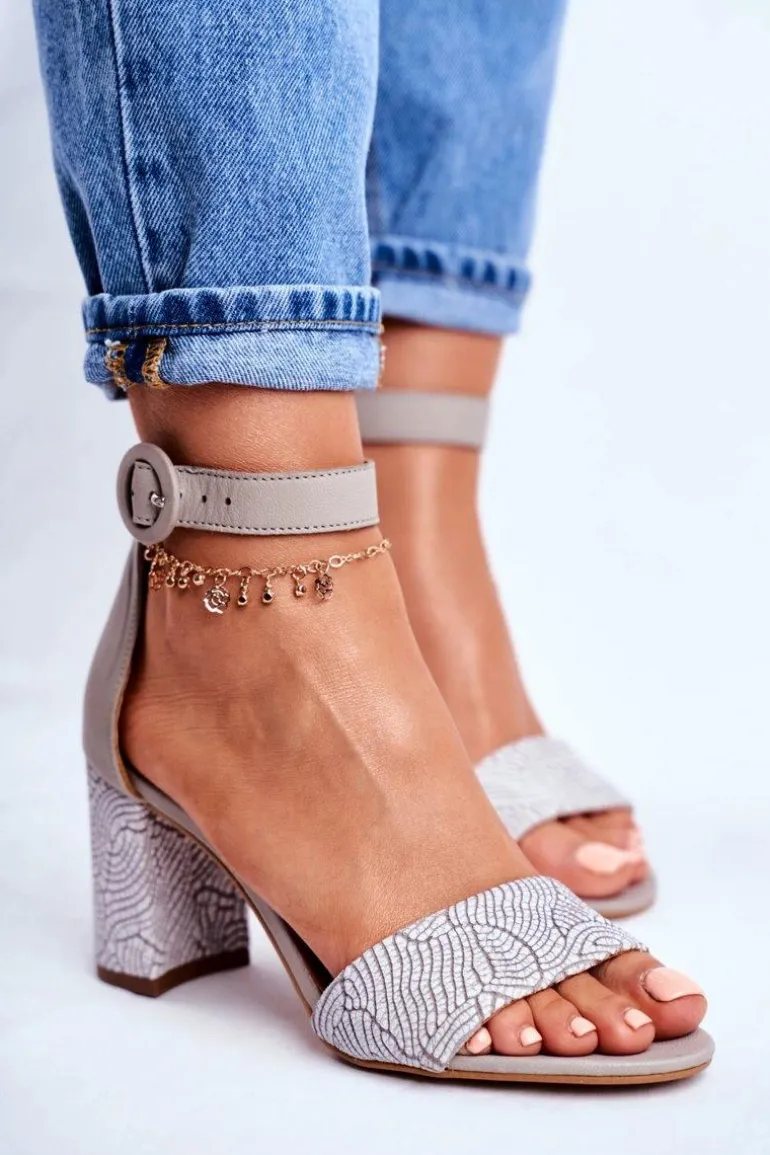 Damskie Sandały Maciejka Skórzane Szare 04235-03/00-5