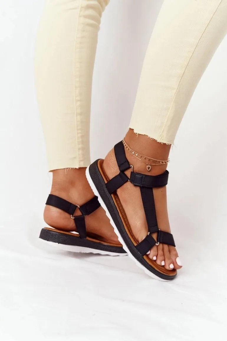 Sportowe sandały damskie na gumowej podeszwie. Buty posiadają miękką wkładkę z eko skóry. Cholewka wykonana jest z przyjemnej w dotyku, piankowej tkaniny. Wyjątkowy fason dostępny jest w wielu pięknych kolorach! Przy wyborze rozmiaru prosimy sugerować się tabelą rozmiarów.