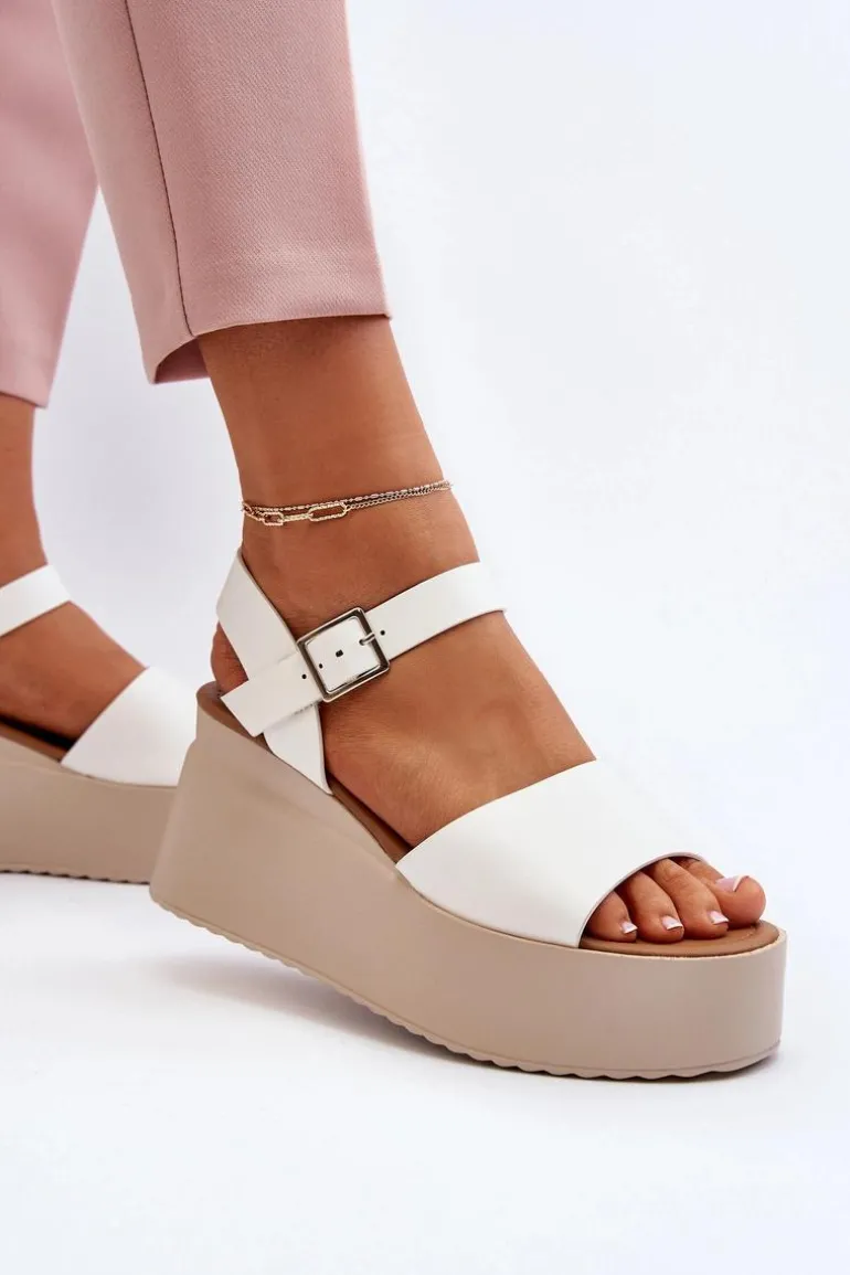 Sandały damskie wykonane z eko skóry. Osadzone na koturnie i platformie, co nie tylko dodaje im modnego wyglądu, ale także zapewnia stabilność podczas chodzenia. Zapinane na regulowany pasek ze sprzączką, łatwo dopasujesz je do swojej stopy. Przy wyborze rozmiaru prosimy sugerować się tabelą rozmiarów. Model ten będzie idealny na letnie spacery czy spotkania na świeżym powietrzu!