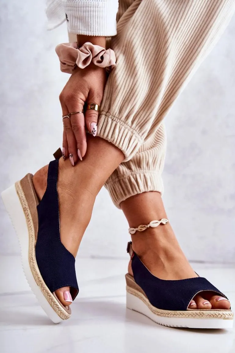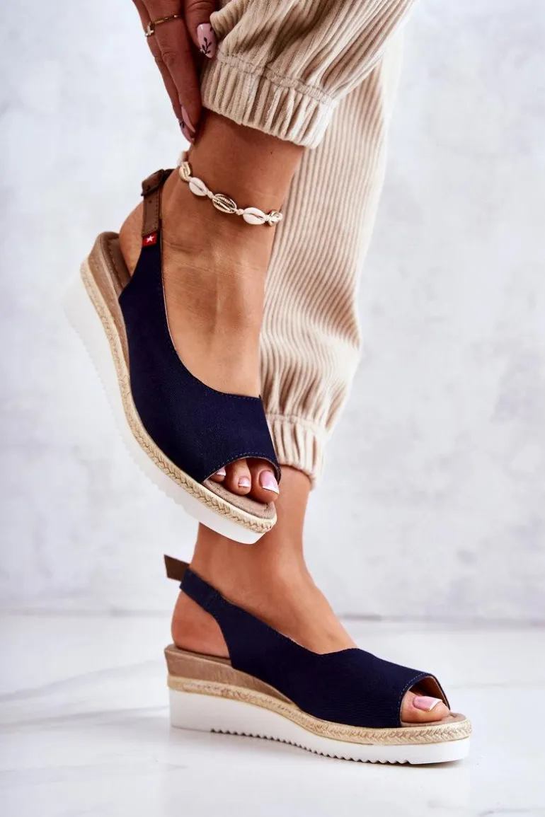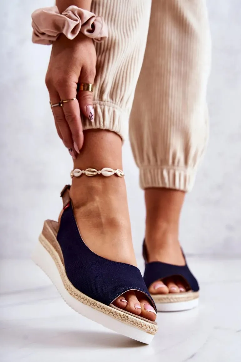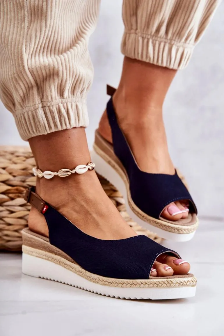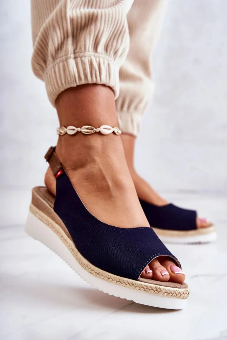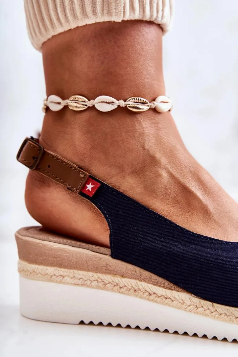 Damskie sandałki wykonane z materiału tekstylnego. Posiadają regulowany pasek z dodatkiem eko skóry zapinany wokół kostki na sprzączkę. Wkładka miękka, wykonana z naturalnej skóry. Buty osadzone na niskim koturnie i delikatnej platformie. Model, który będzie pasować do wielu stylizacji. Idealne na lato, przewiewne i wygodne. Koniecznie sprawdź także pozostałe sandały marki Big Star dostępne w naszej ofercie! Podczas wyboru rozmiaru prosimy sugerować się tabelą rozmiarów.