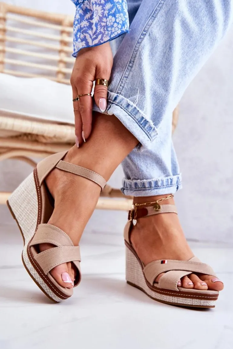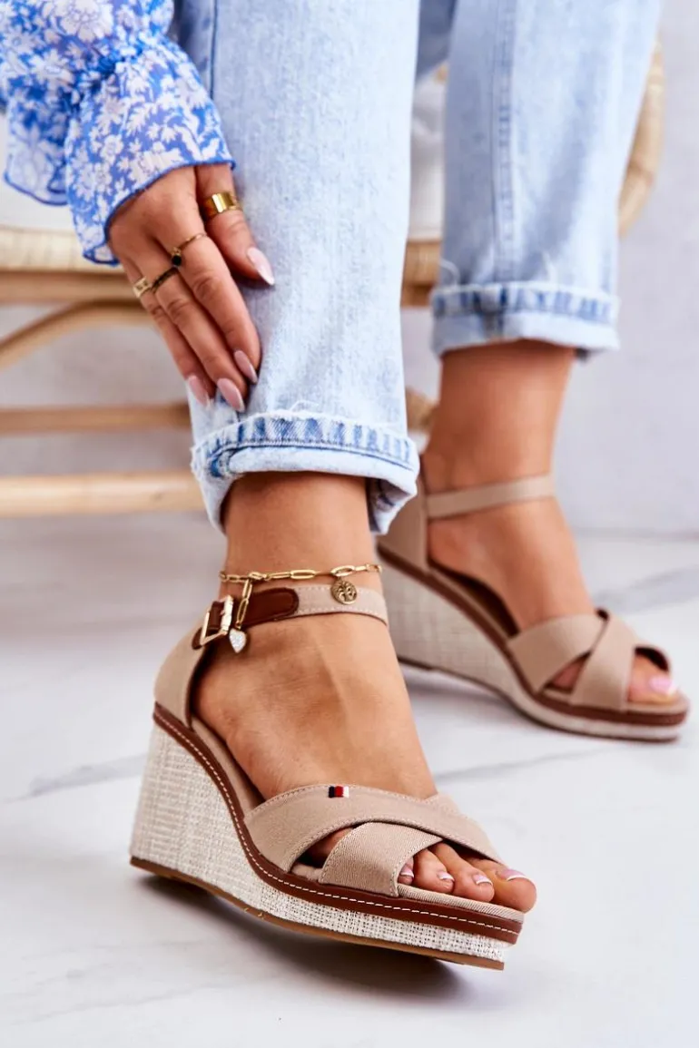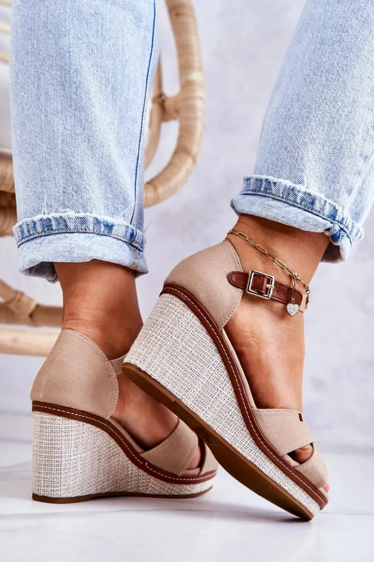 Damskie Sandały Na Koturnie Ciemnobeżowe Veenus