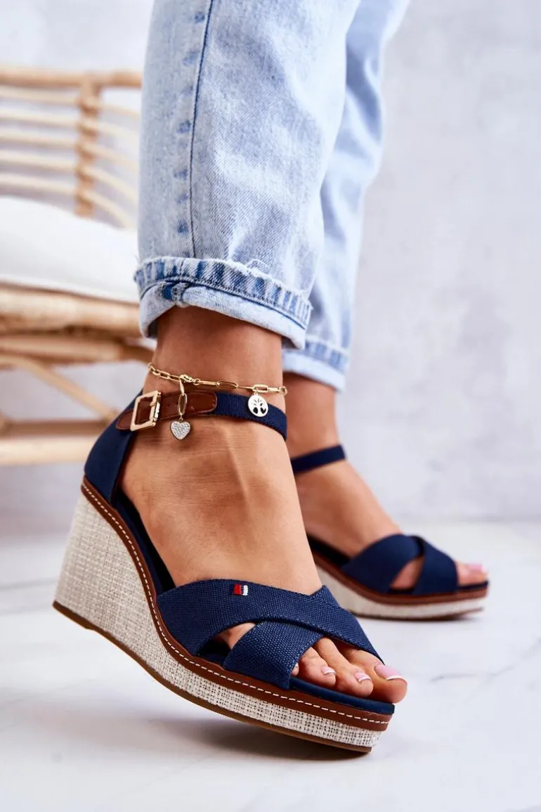 Wyjątkowe sandały na koturnie z plecionką. Buty zostały wykonane z materiału tekstylnego. Zapiętek usztywniany. Miękka wkładka wykonana z połączenia eko skóry oraz materiału tekstylnego zadba o Twój komfort podczas użytkowania. Zapinane wokół kostki na regulowany pasek ze sprzączką. Zdobienie nicią na jednym z pasków. Buty posiadają odkryte palce i zakrytą piętę. Dzięki takiemu obcasowi buty są stabilniejsze od tradycyjnych szpilek. Świetny model na letnie dni! Przy wyborze rozmiaru prosimy sugerować się tabelą rozmiarów.