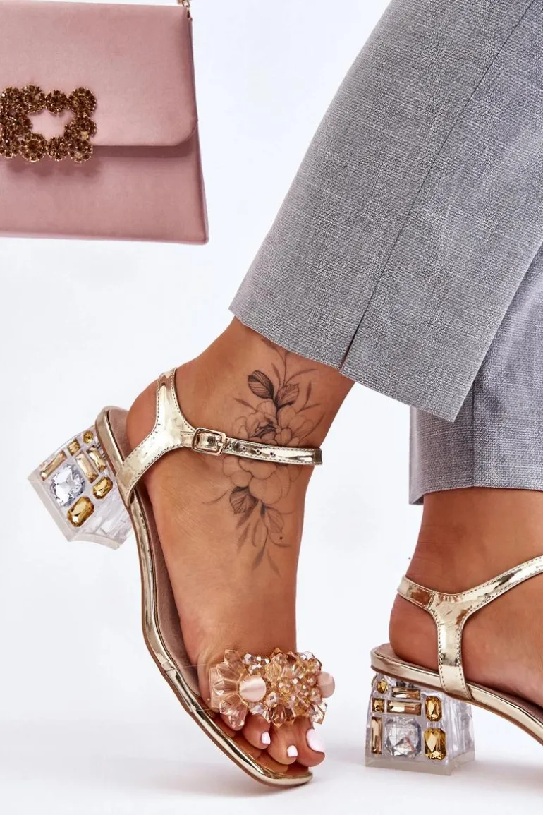 Eleganckie sandały osadzone na niskim obcasie w postaci klocka. Buty posiadają ozdoby na paseczkach w formie koralików. Zapinane wokół kostki na regulowany pasek ze sprzączką. Miękka wkładka z naturalnej skóry zadba o Twój komfort. Sandałki świetnie sprawdzą się na różnego rodzaju uroczystościach czy spotkaniach. Przy wyborze rozmiaru prosimy sugerować się tabelą rozmiarów.