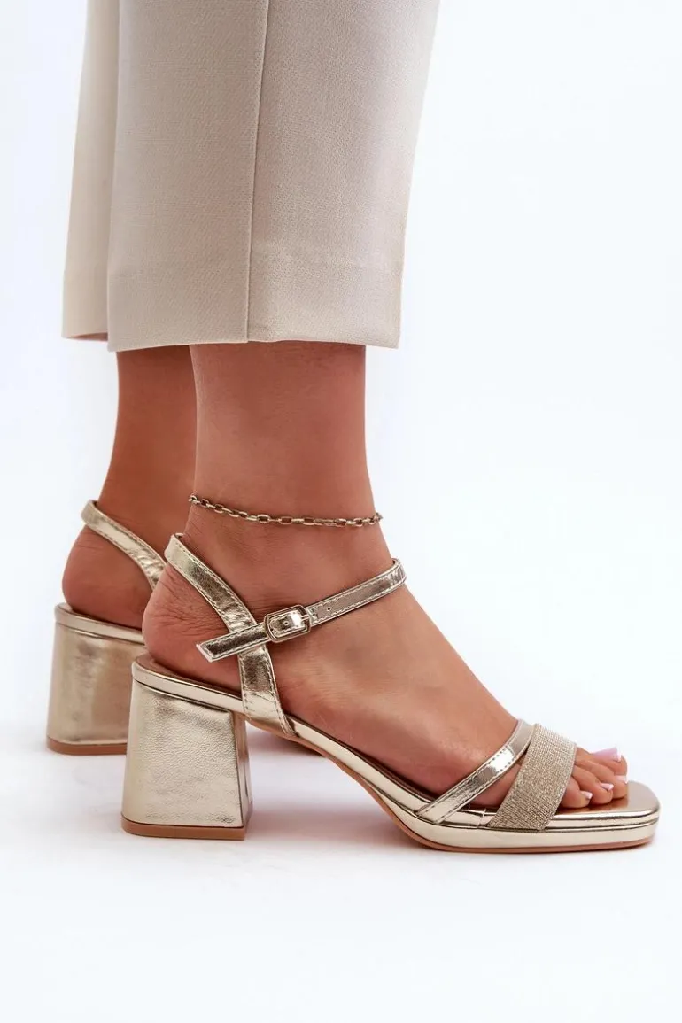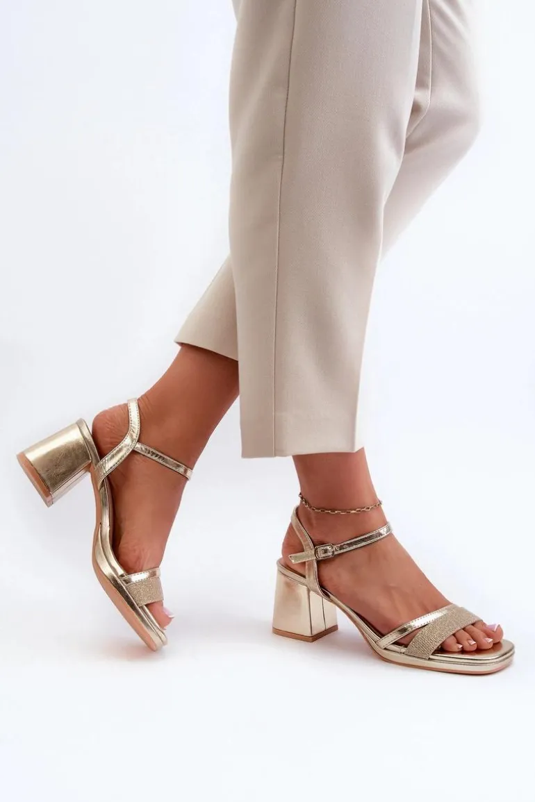 Damskie Sandały Na Obcasie Z Błyszczącym Paskiem Złote Tessata