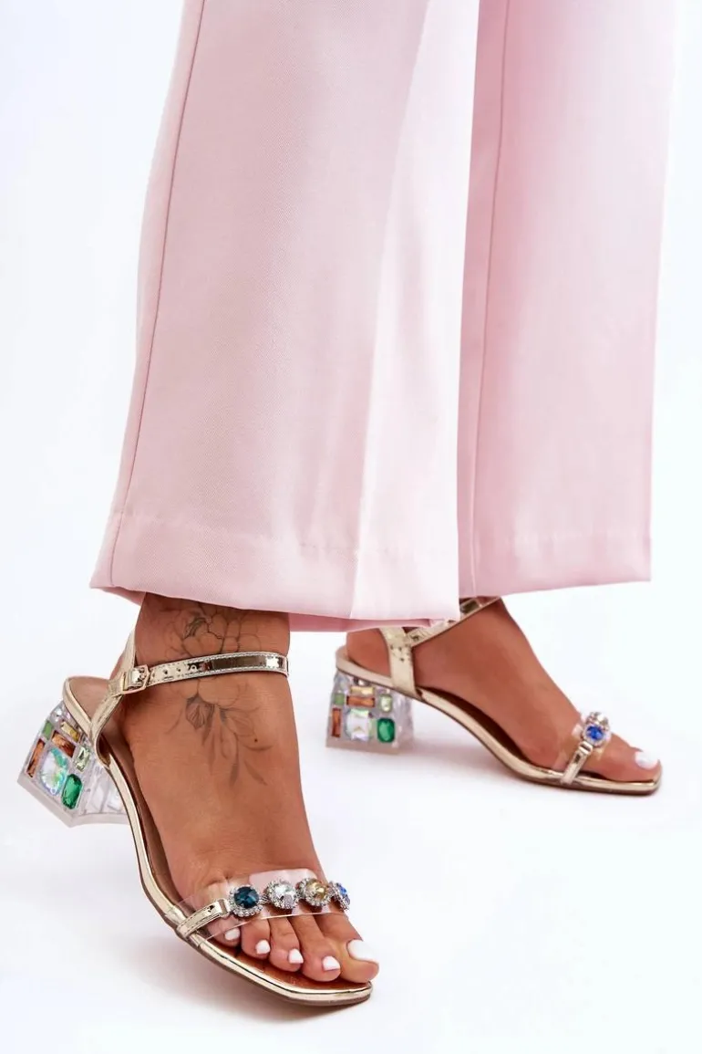 Cudowne sandały damskie wykonane z eko skóry oraz tworzywa sztucznego. Osadzone na niskim, zdobionym obcasie w postaci klocka. Buty posiadają ozdobne dżety na przodzie. Sandałki są zapinane wokół kostki na regulowany pasek ze sprzączką. Miękka wkładka z naturalnej skóry zadba o Twój komfort podczas użytkowania. Przy wyborze rozmiaru prosimy sugerować się tabelą rozmiarów.