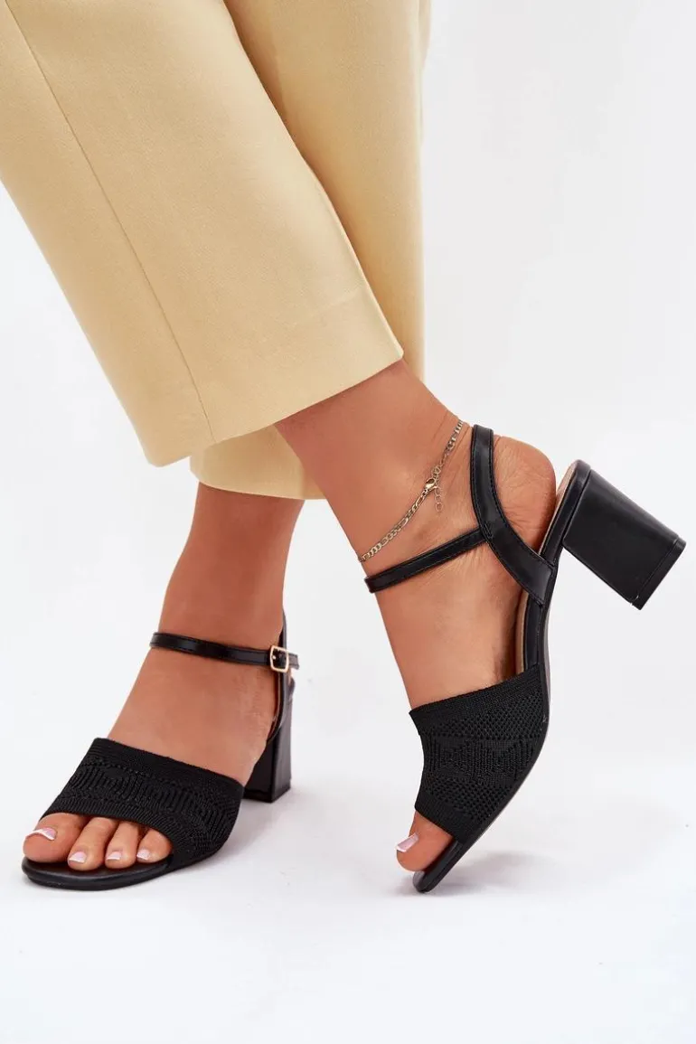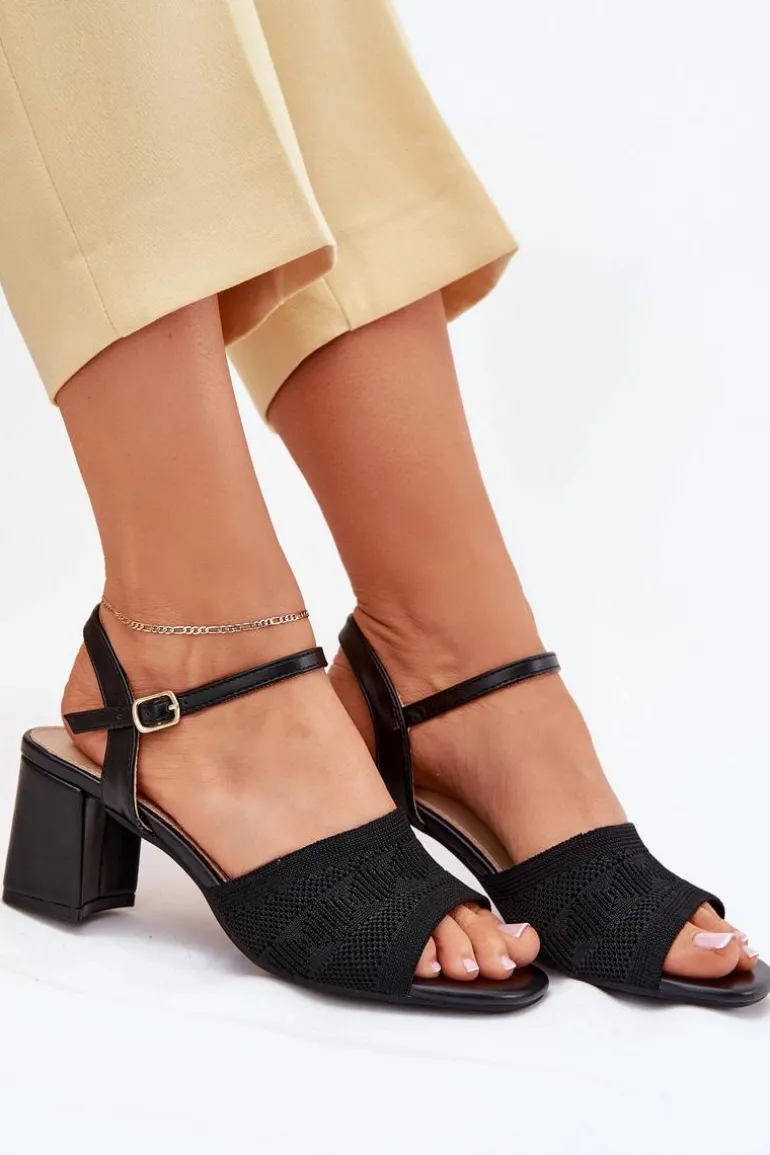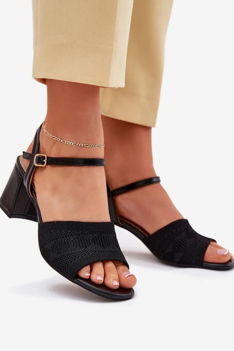 Damskie Sandały Na Słupkowym Obcasie Czarne Sarena