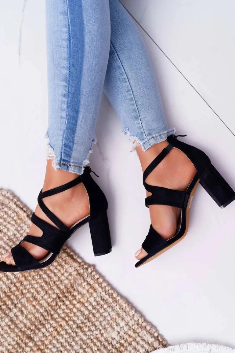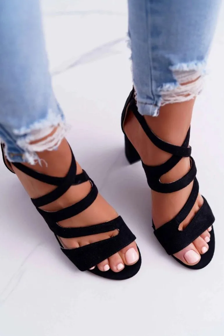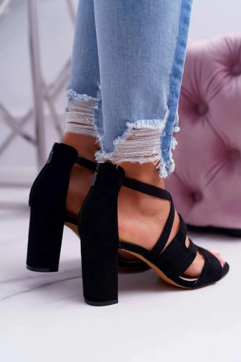 Damskie Sandały Na Słupku Zamszowe Czarne Lemilia