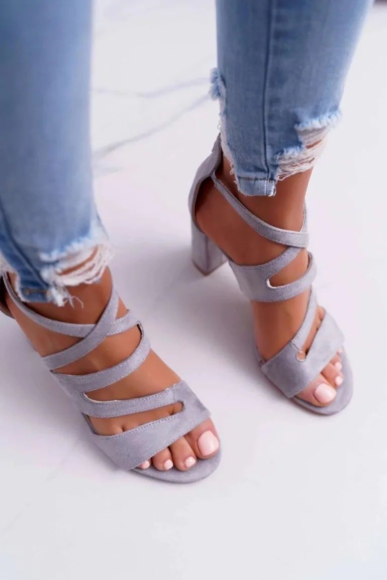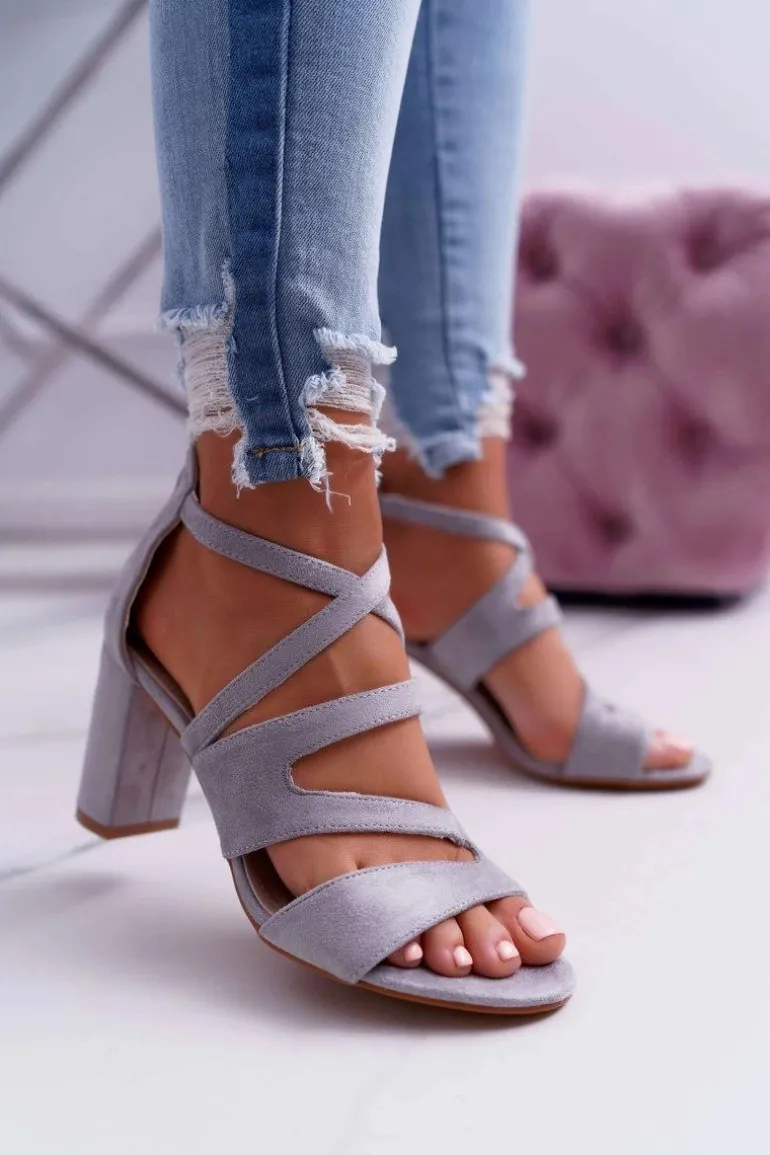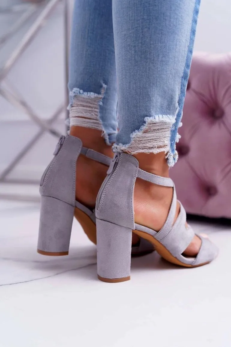 Damskie Sandały Na Słupku Zamszowe Szare Lemilia