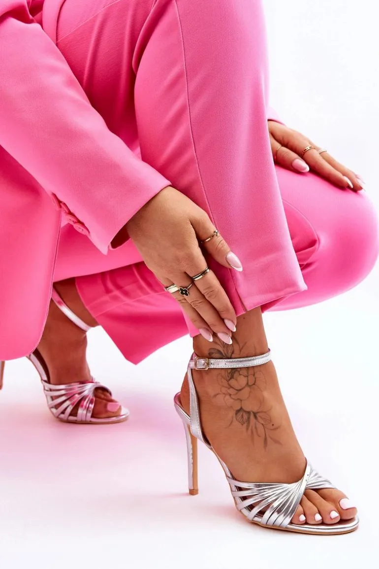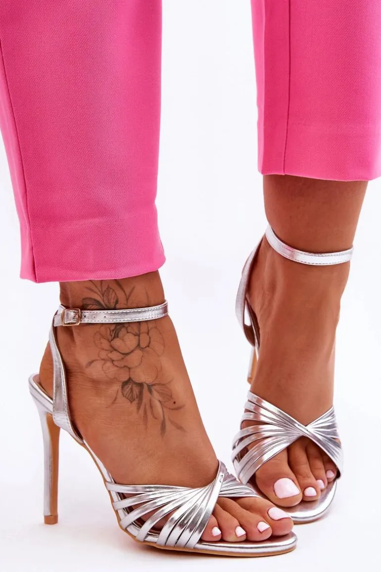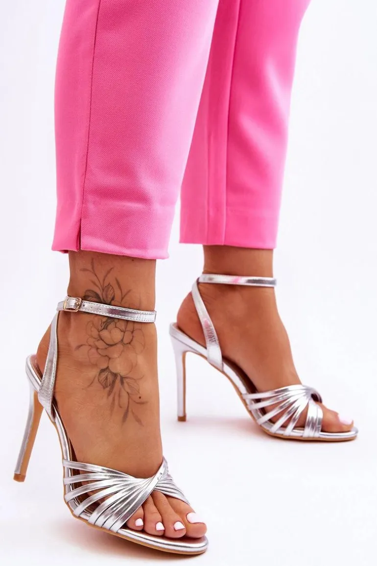 Damskie Sandały Na Szpilce Srebrne My Darling