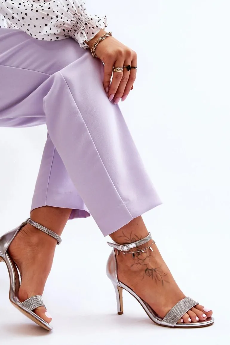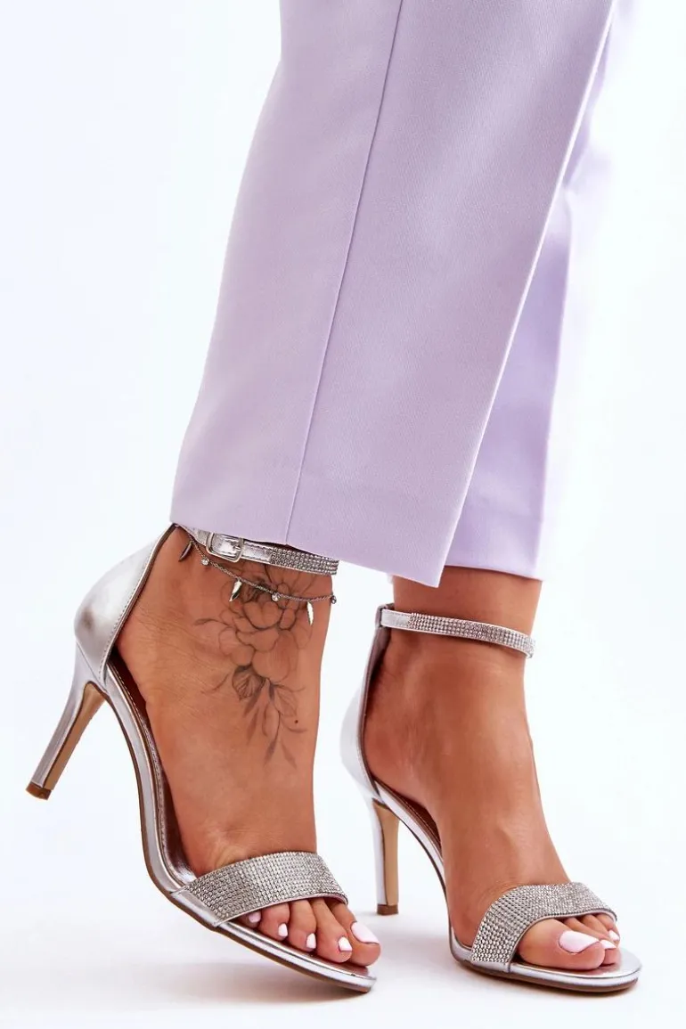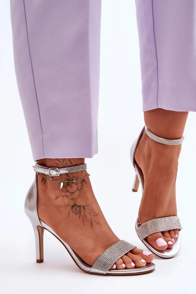 Damskie Sandały Na Szpilce Z Dżetami Srebrne Perfecto