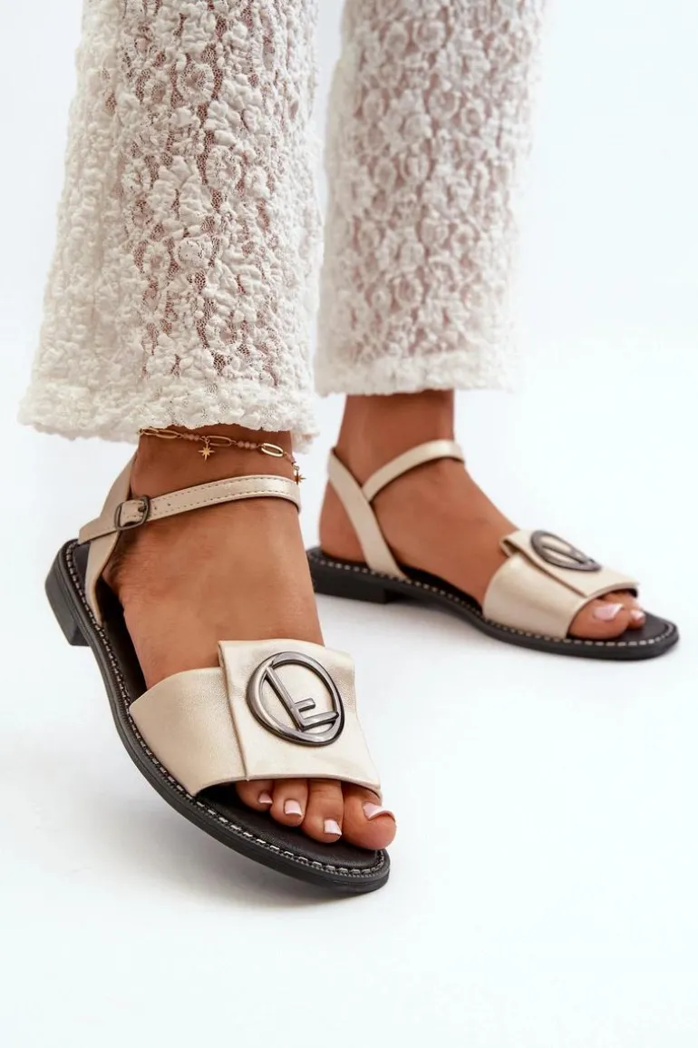 Eleganckie, płaskie sandały damskie z ozdobnymi detalami. Zapinane na regulowany pasek ze sprzączką, zapewniają idealne dopasowanie. Stylowy design i wygoda sprawiają, że są doskonałym wyborem na różne okazje. Przy wyborze rozmiaru prosimy kierować się tabelą rozmiarów.