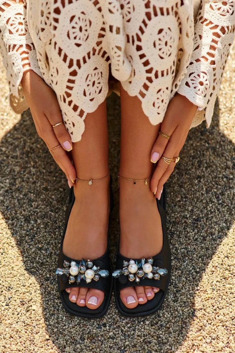 Damskie sandały z wysokiej jakości ekologicznej skóry. Przód ozdobiony eleganckimi detalami. Pasek z tyłu posiada gumeczkę dla lepszego dopasowania. Osadzone na płaskim obcasie. Miękka wkładka Comfort gwarantuje komfort noszenia. Przy wyborze rozmiaru prosimy kierować się tabelą rozmiarów.