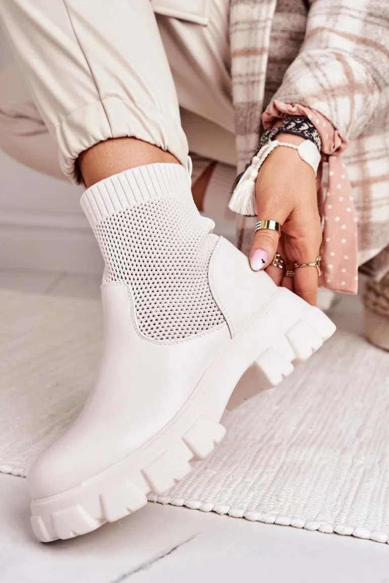 Damskie skarpetkowe botki na platformie. Miękka ażurowa cholewka, oraz masywna podeszwa to 'must have’ w tym sezonie! Buty wykonane są z eko skóry w modnym kolorze. Koniecznie sprawdź całą naszą kolekcję damskich botków. Przy wyborze rozmiaru prosimy sugerować się tabelą rozmiarów.