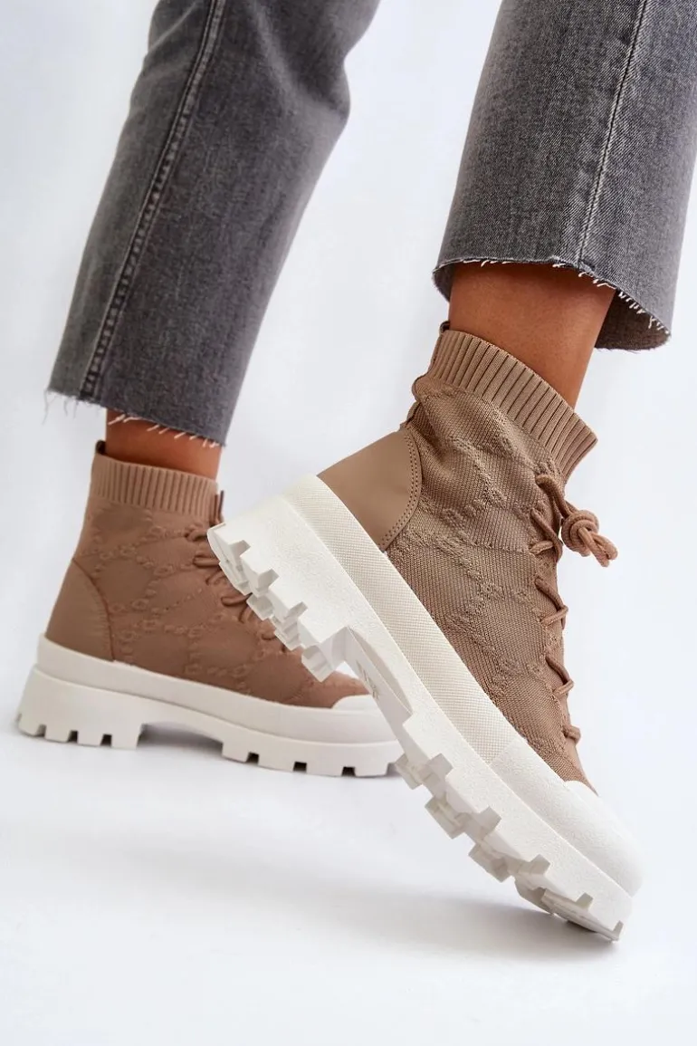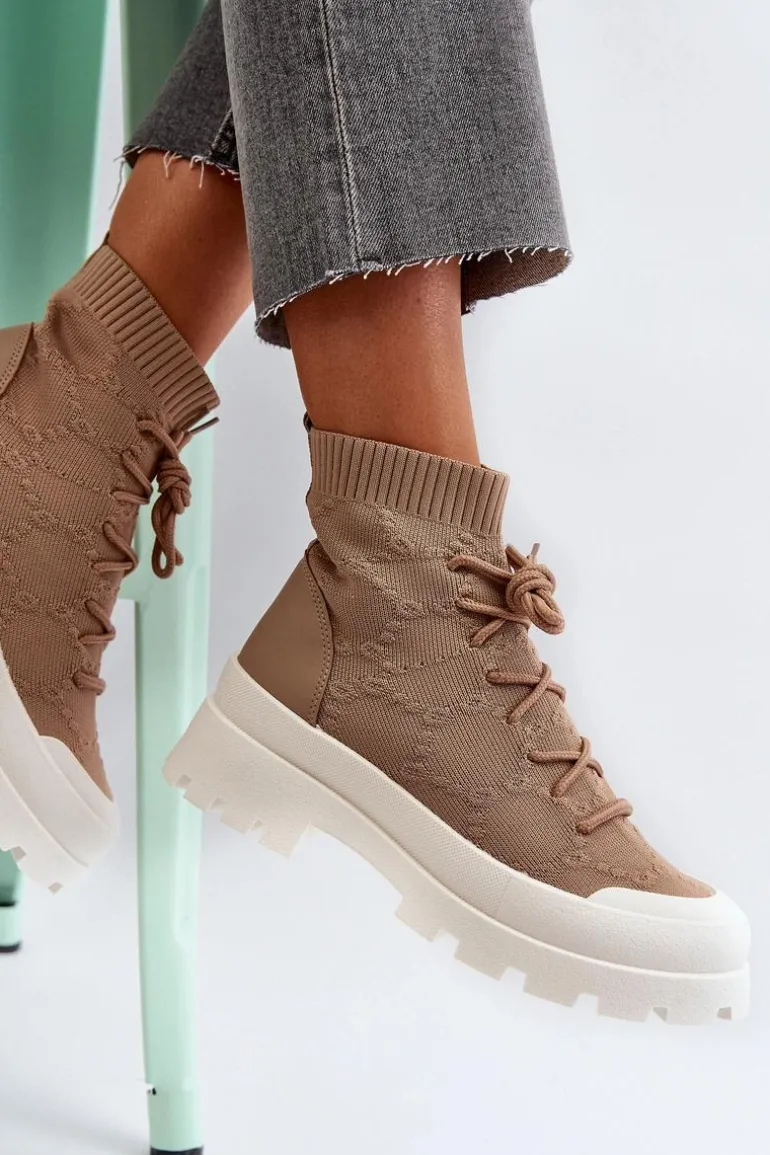 Damskie Skarpetkowe Wsuwane Botki Brązowe Solime
